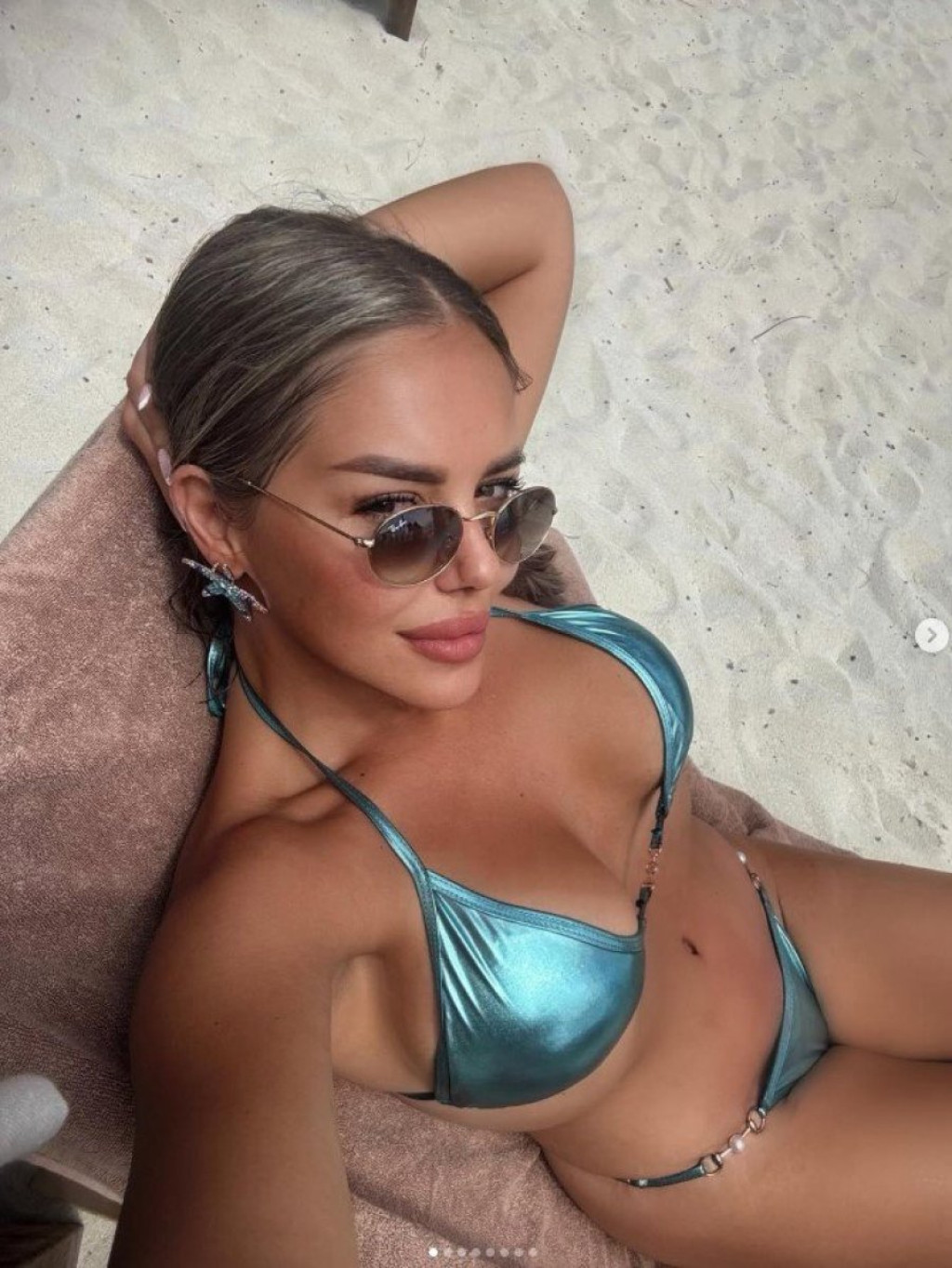 Na slikama koje je objavila Rodićeva pozira u minijaturnom plavom bikiniju, koji je posebno upečatljiv zbog detalja - donji deo kupaćeg ukrašen je biserima, dok je celokupni letnji stajling upotpunila minđušama u obliku morske zvezde, koje su se savršeno uklopile uz boju kostima.