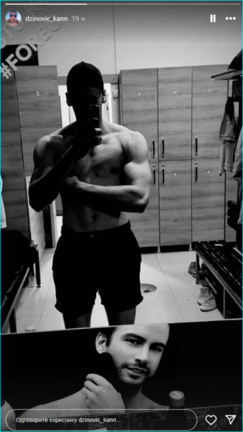 Mladi Džinović pozirao je u svlačionici teretane, ponosno pokazujući zategnute mišiće i isklesan stomak, čime je, sudeći po komentarima, oduševio mnoge pripadnice lepšeg pola.