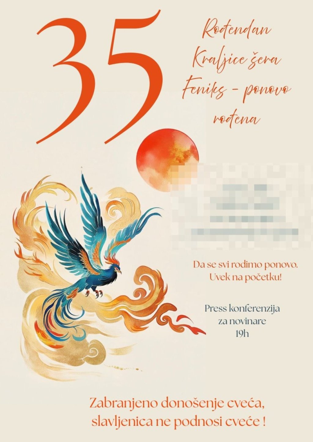 "35. rođendan 'kraljice šera' - ponovo rođena! Da se svi rodimo ponovo. Uvek na početku! Zabranjeno donošenje cveća. Slavljenica ne podnosi cveće", poručila je voditeljka.