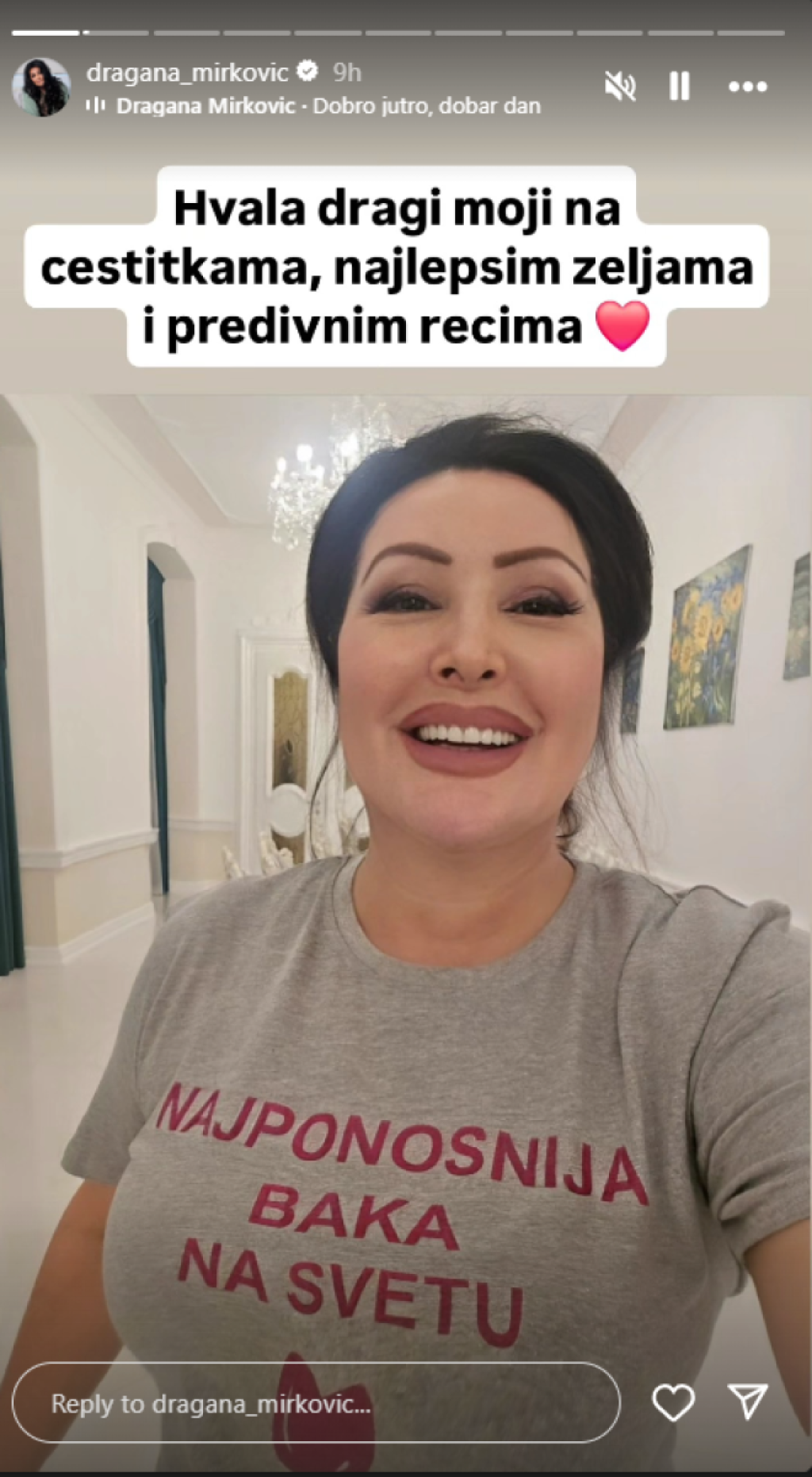 "Hvala, dragi moji, na čestitkama, najlepšim željama i predivnim rečima", poručila je Dragana putem društvenih mreža.