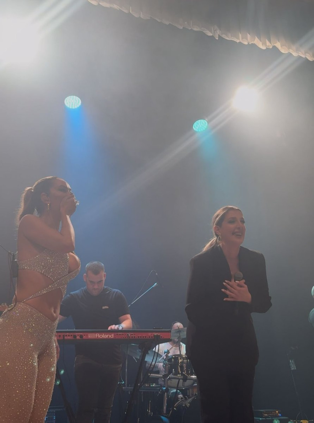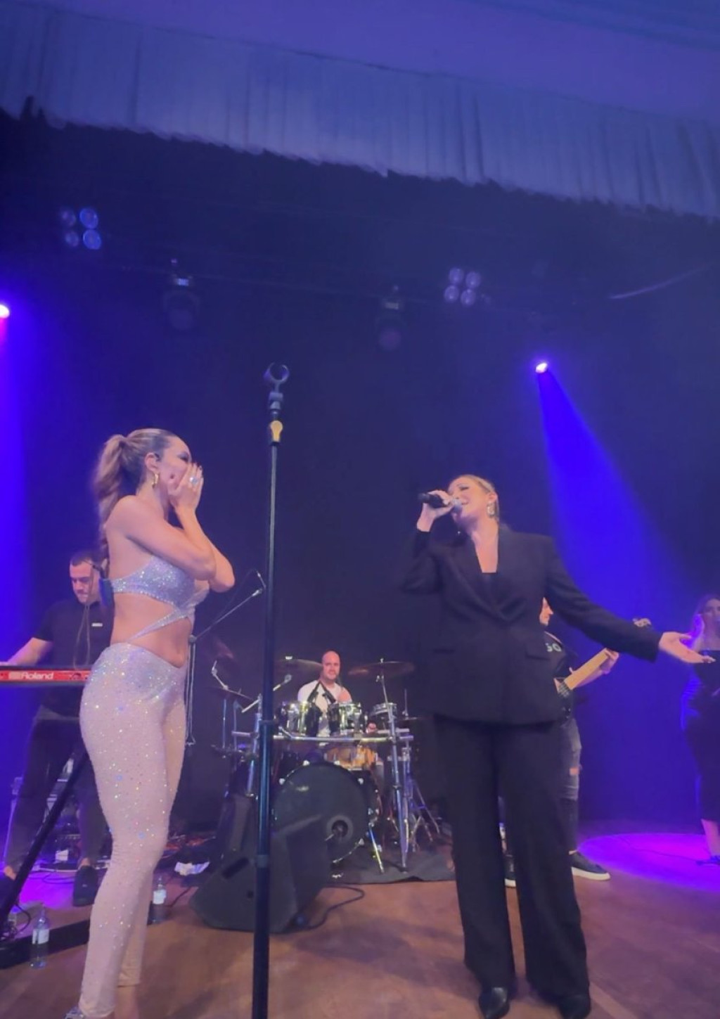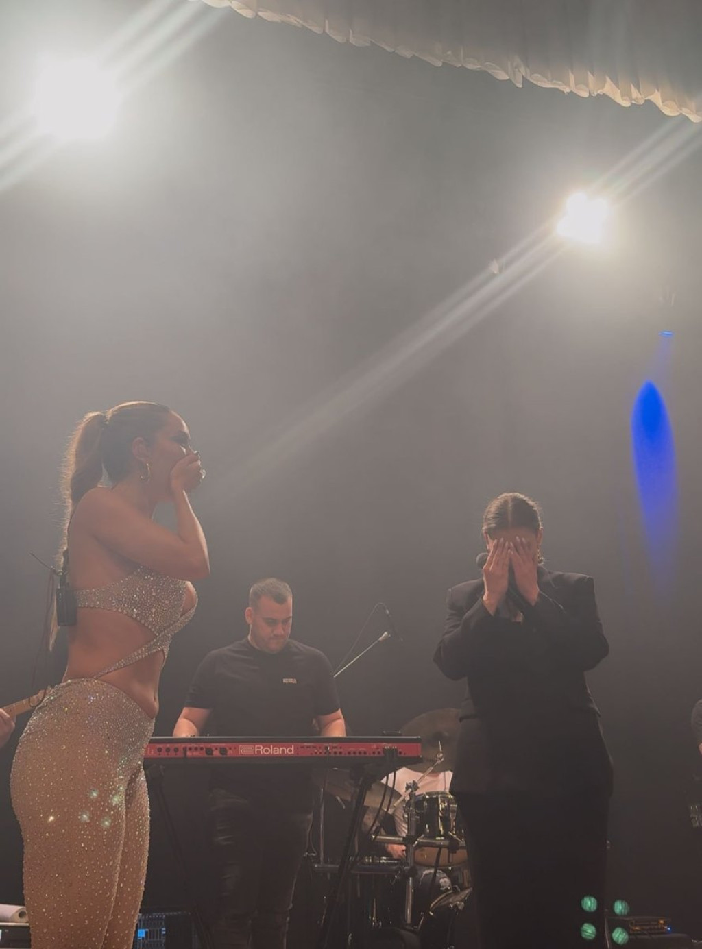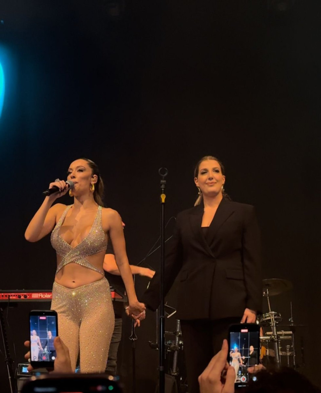 - Ovde u publici je jedna divna devojka koju ja mnogo volim. Simona, da li si spremna? - pitala je pevačica, a onda Simonu izvela na binu gde su zajedno otpevale hit pesmu "Da overim".