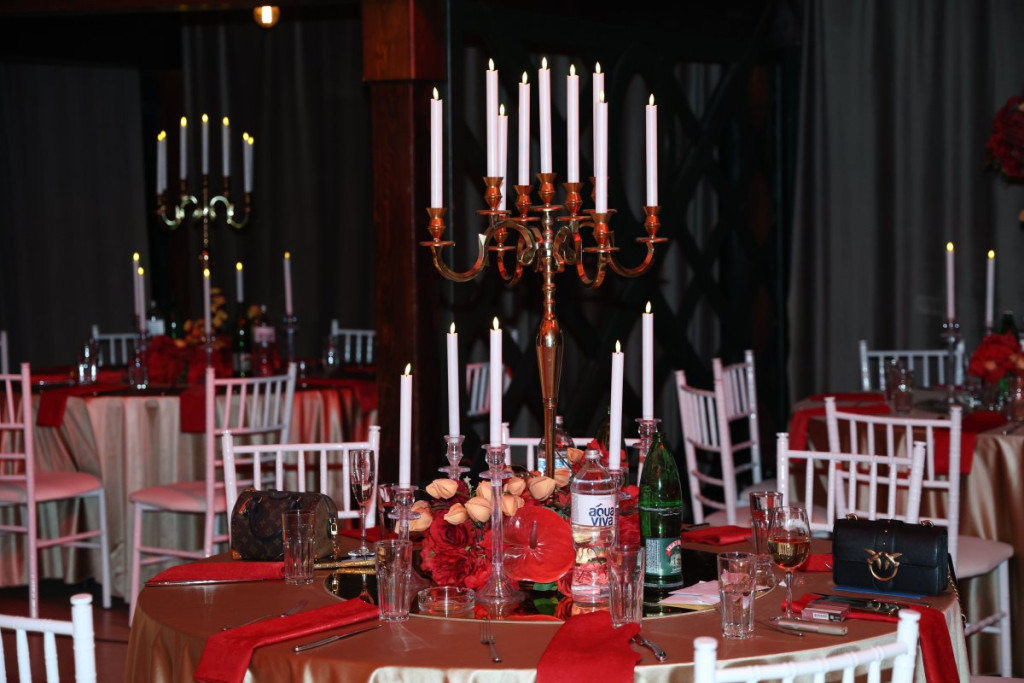 Stotine upaljenih sveća osvetlile su prostor, dok su aranžmani od crvenih ruža stvarali romantičnu, ali moćnu atmosferu.