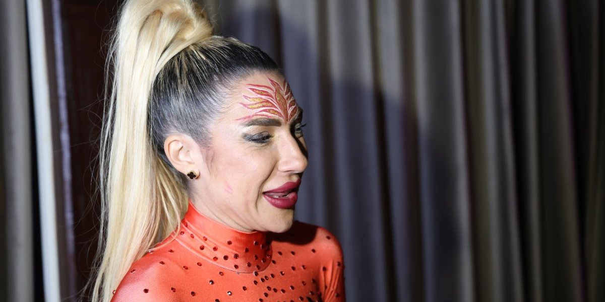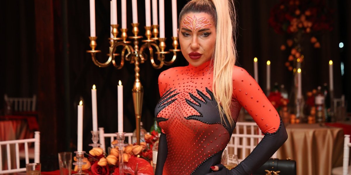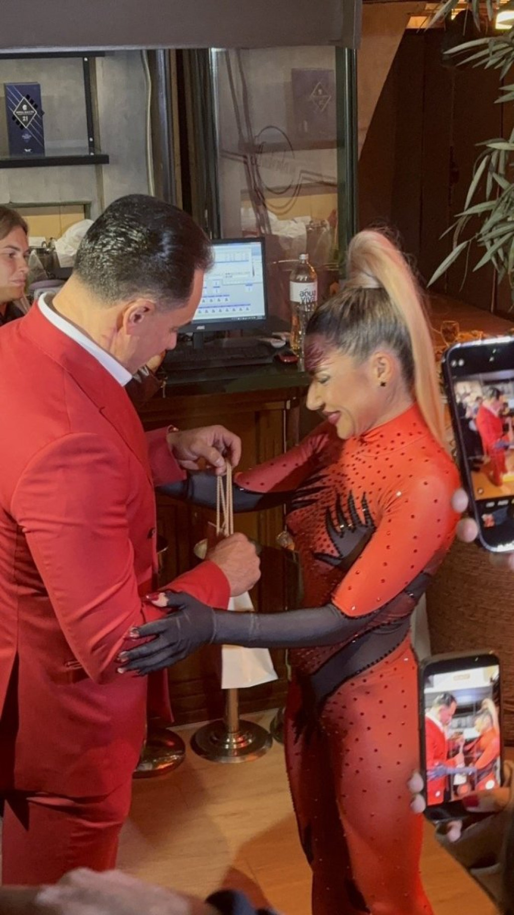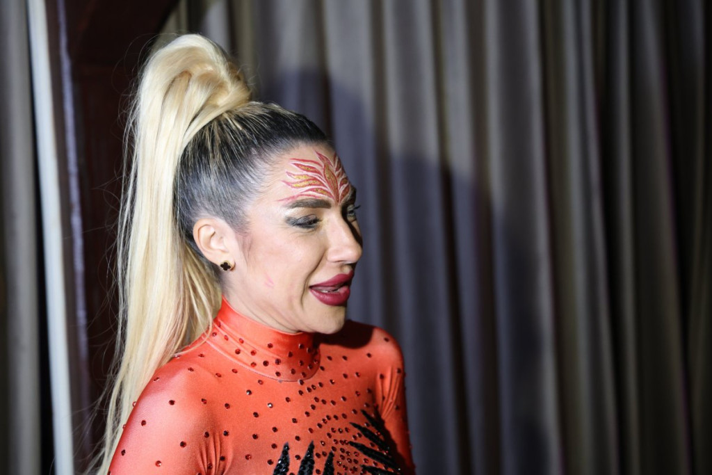 Jovana je za ovu priliku odabrala crveni kombinezon koji je na intimnim delovima imao motive muške šake, a tokom cele večeri plesala je u zavodljivom ritmu svojstvenom samo njoj.