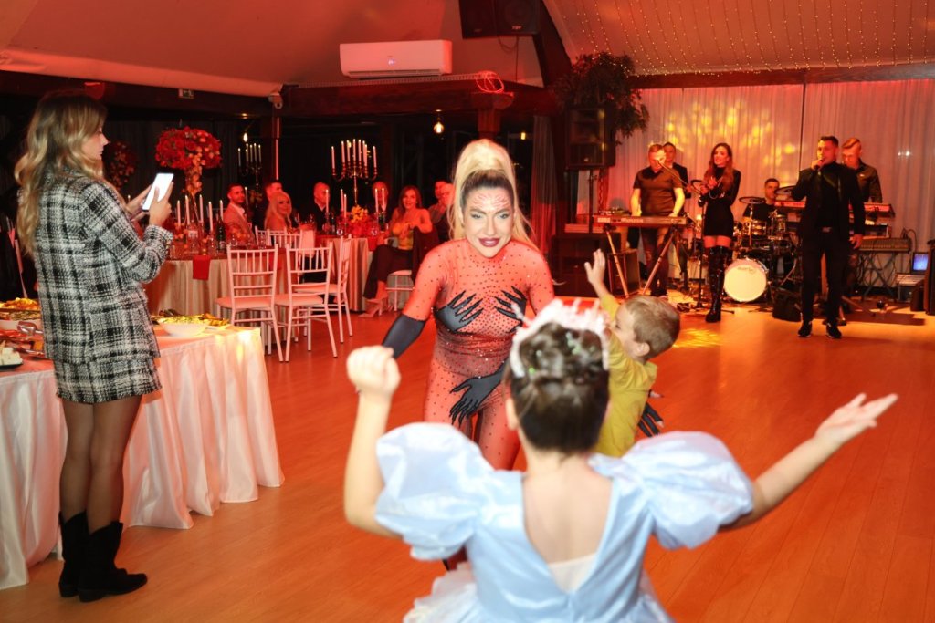 Vrhunac večeri usledio je kada su stigli trubači. Voditeljka se tada popela na stolicu i zaplesala uz ritam trube, dok su ispred nje bili njen prvi suprug Vojislav Milošević i bivši dečko Dragan Stanković. U jednom trenutku obojica su kleknuli, a zatim im se pridružila i Jovanina ćerkica Lea.