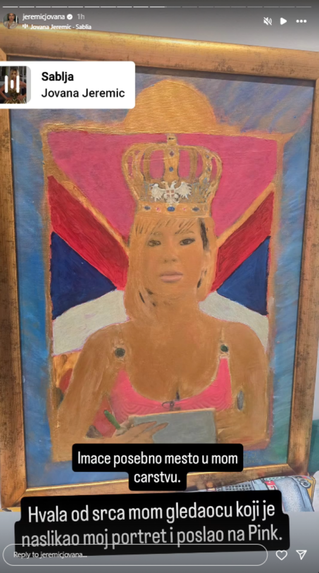 "Imaće posebno mesto u mom carstvu. Hvala od srca mom gledaocu koji je naslikao moj portret i poslao na Pink", napisala je Jovana.