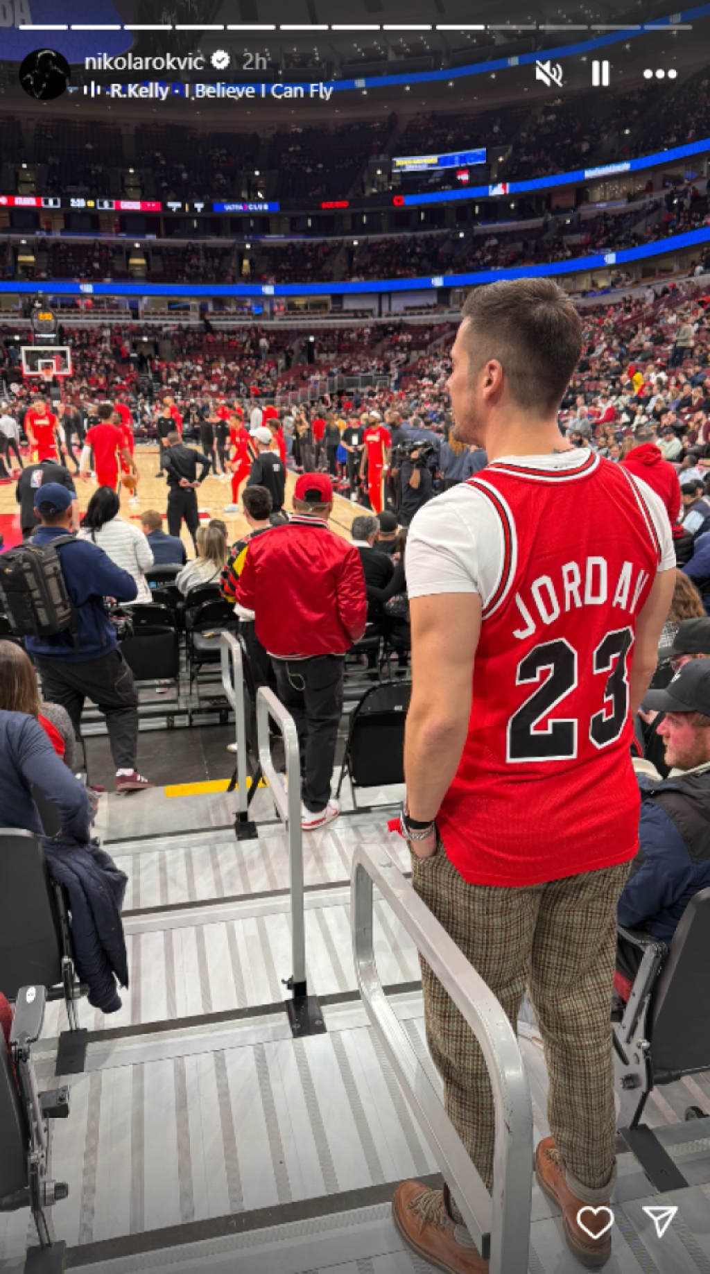 Rokvić je slobodno vreme iskoristio da uživo prati meč između Čikago Bulsa i Atlanta Hoksa, a nakon utakmice družio se sa slavnim sportistom.