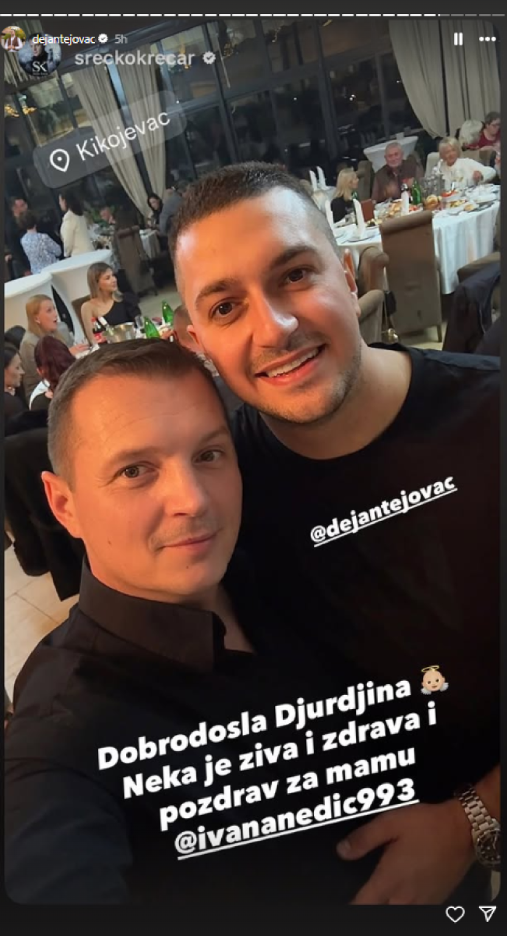 Dejan je povodom rođenja ćerke napravio proslavu, a pored orkestra koji je unajmio specijalni gost je bio njegov prijatelj Radiša Urošević koji je muzikom sve okupljene podigao na noge.