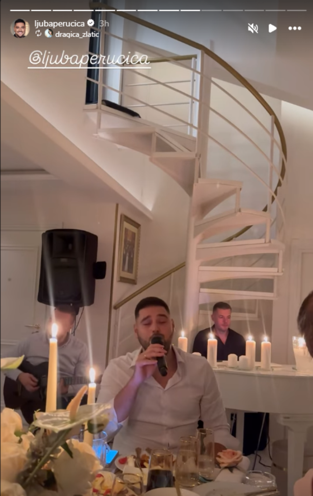 Ljuba se, naravno, latio mikrofona i pesmom raznežio sve prisutne. Tokom njegovog nastupa zabeležen je i dirljiv trenutak kada je pevač, dok je pevao, zagrlio svoju suprugu i njihovog starijeg sina Alekseja.