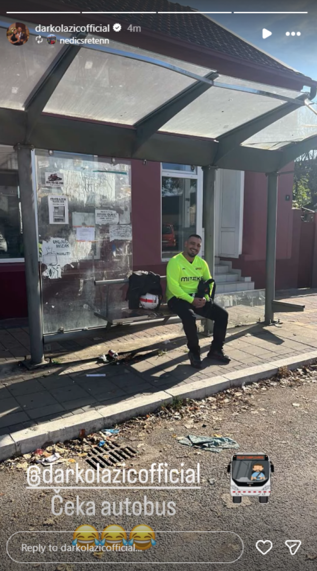 "Čeka autobus", našalio se njegov prijatelj koji ga je tagovao na fotografiji.