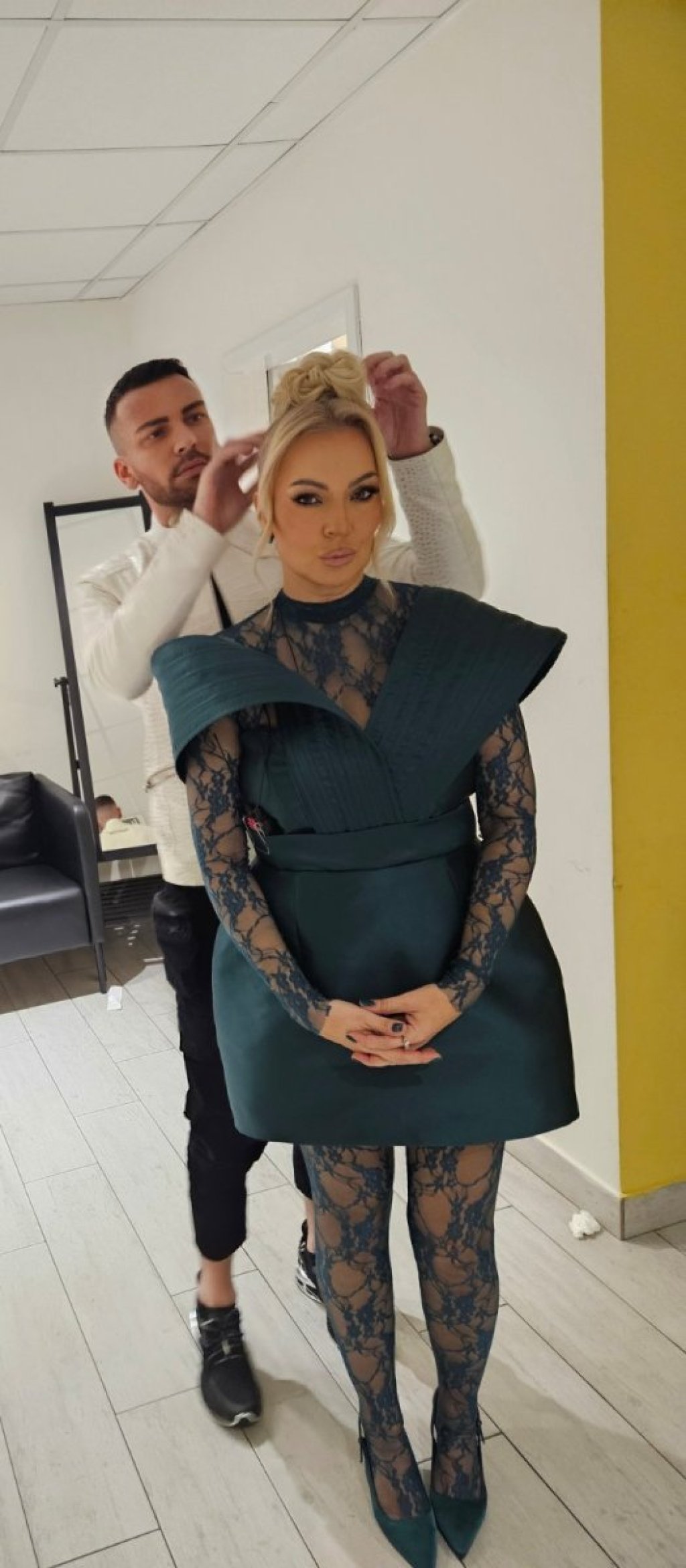 U momentu našeg dolaska, pevačici je frizuru sređivao jedan od najpoznatijih beogradskih frizera Peđa Božić, čovek koji već godinama "radi o glavi" najpoznatijim damama sa estrade.