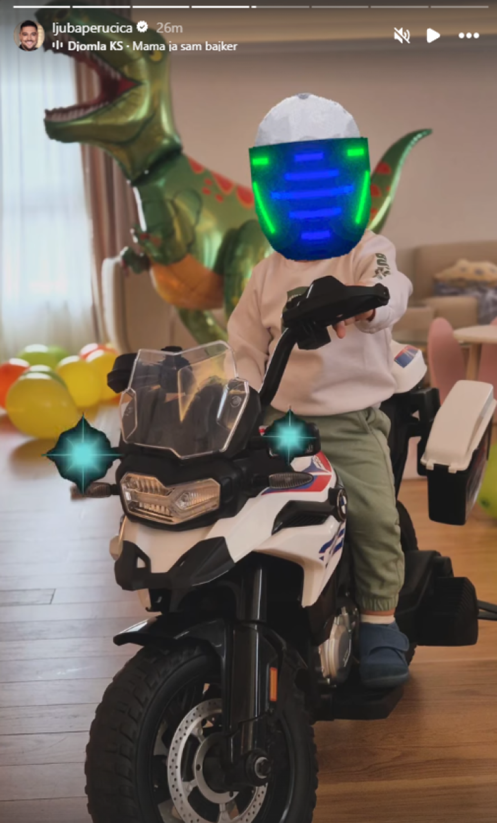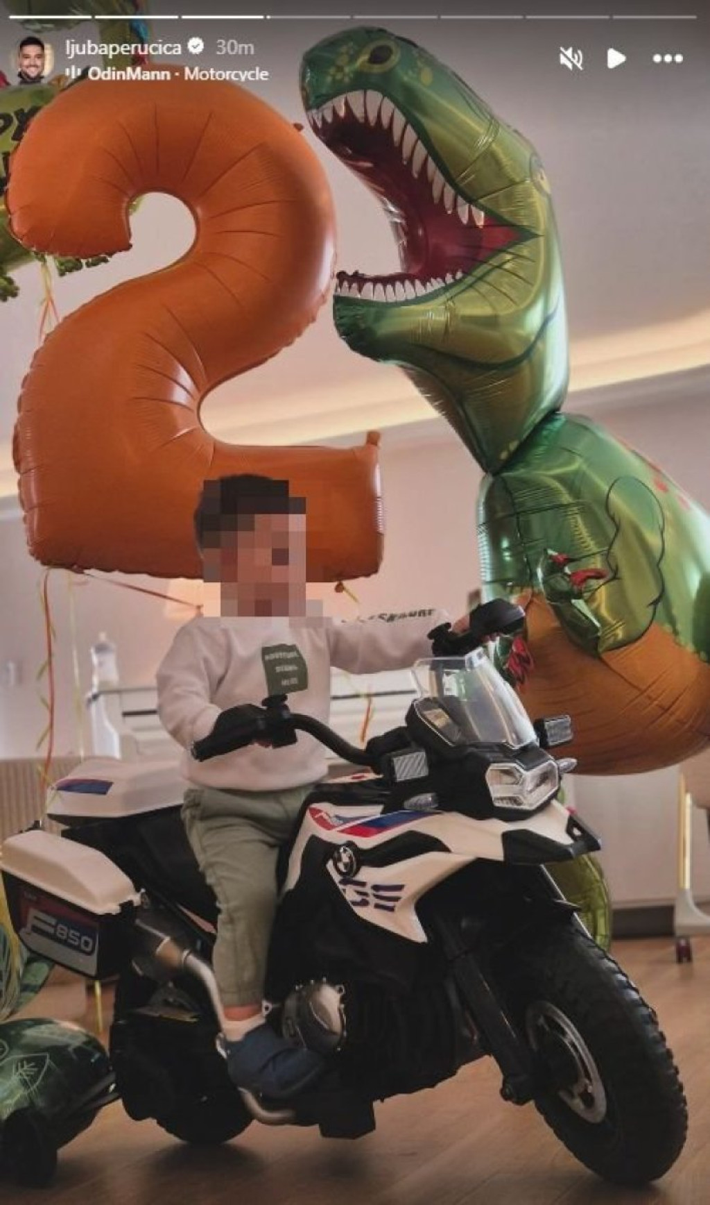 Čitav dnevni boravak bio je ispunjen balonima, a dečak je trkarao kako bi svaki detalj video. Najviše je bio oduševljen zbog glavnog iznenađenja, motora na koji je odmah seo, a pevač je sve fotografije ponosno objavio.