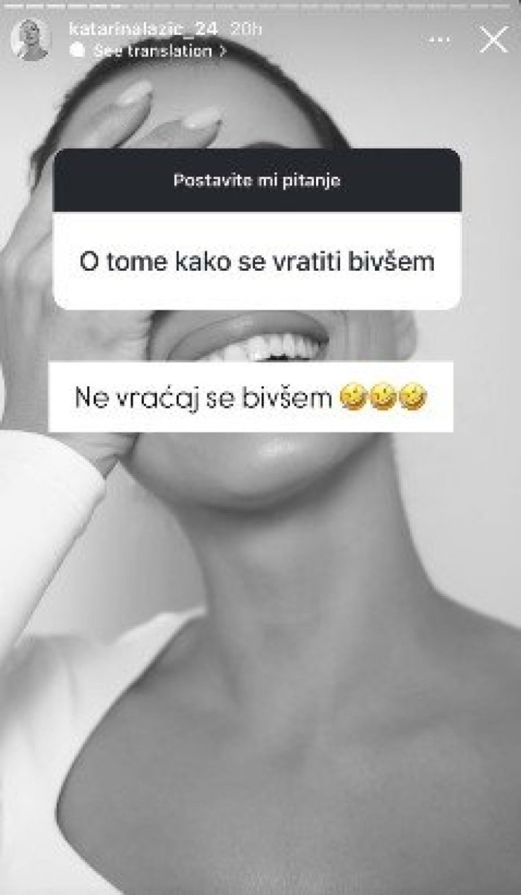 Ona je, naime, odgovarala na pitanja svojih pratilaca, a kada ju je jedna devojka zamolila za savet kako da se vrati bivšem, budući da ima iskustva u tome, Kaća je zaprepastila odgovorom.