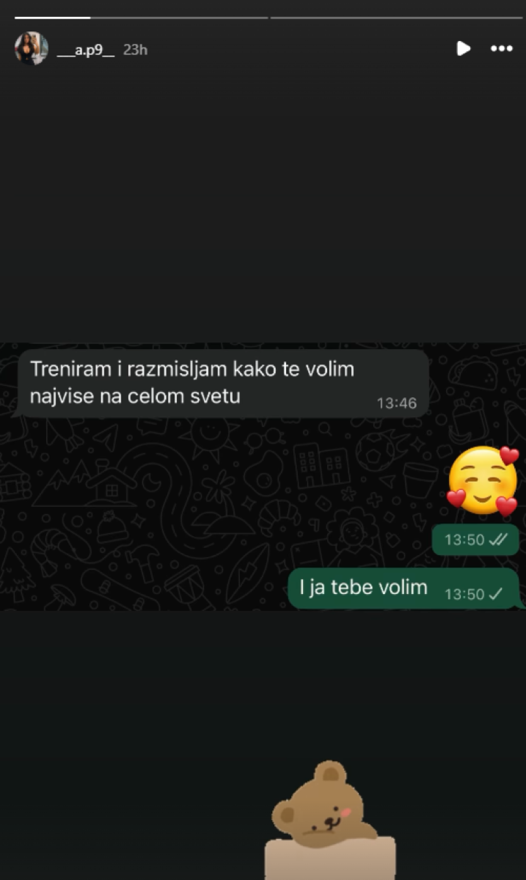 "Treniram i razmišljam kako te volim najviše na celom svetu", napisao je reper na šta mu je Aleksandra odgovorila u istom tonu: "I ja tebe volim".
