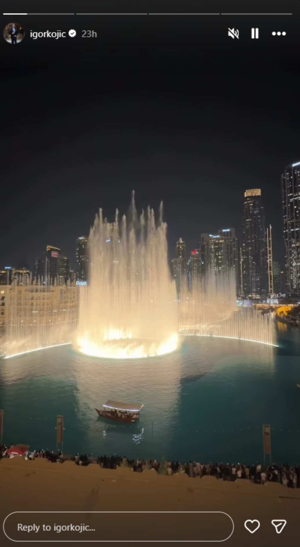 Tokom boravka, Igor je podelio i snimke čuvene fontane i njenog spektakularnog šoua ispred Dubai Mola, ali i drugih zanimljivosti koje ovaj luksuzni grad nudi, pokazujući da uživa u svakom trenutku ovog putovanja.