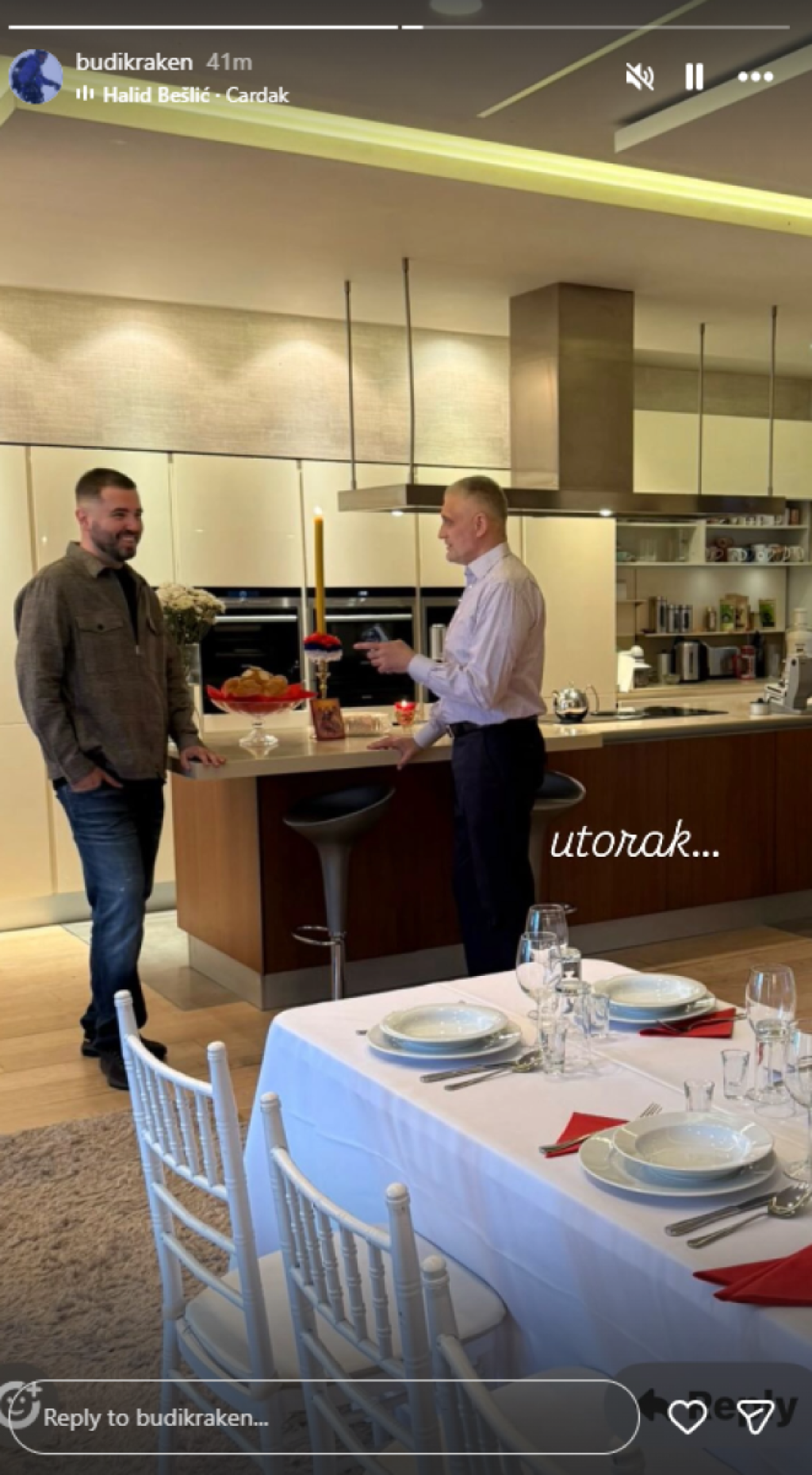 I ovoga puta Jovanović se uslikao u kuhinji, ali u elegantnom izdanju. Političar je spreman da dočeka goste, a društvo mu pravi prijatelj Aleksandar Kos.