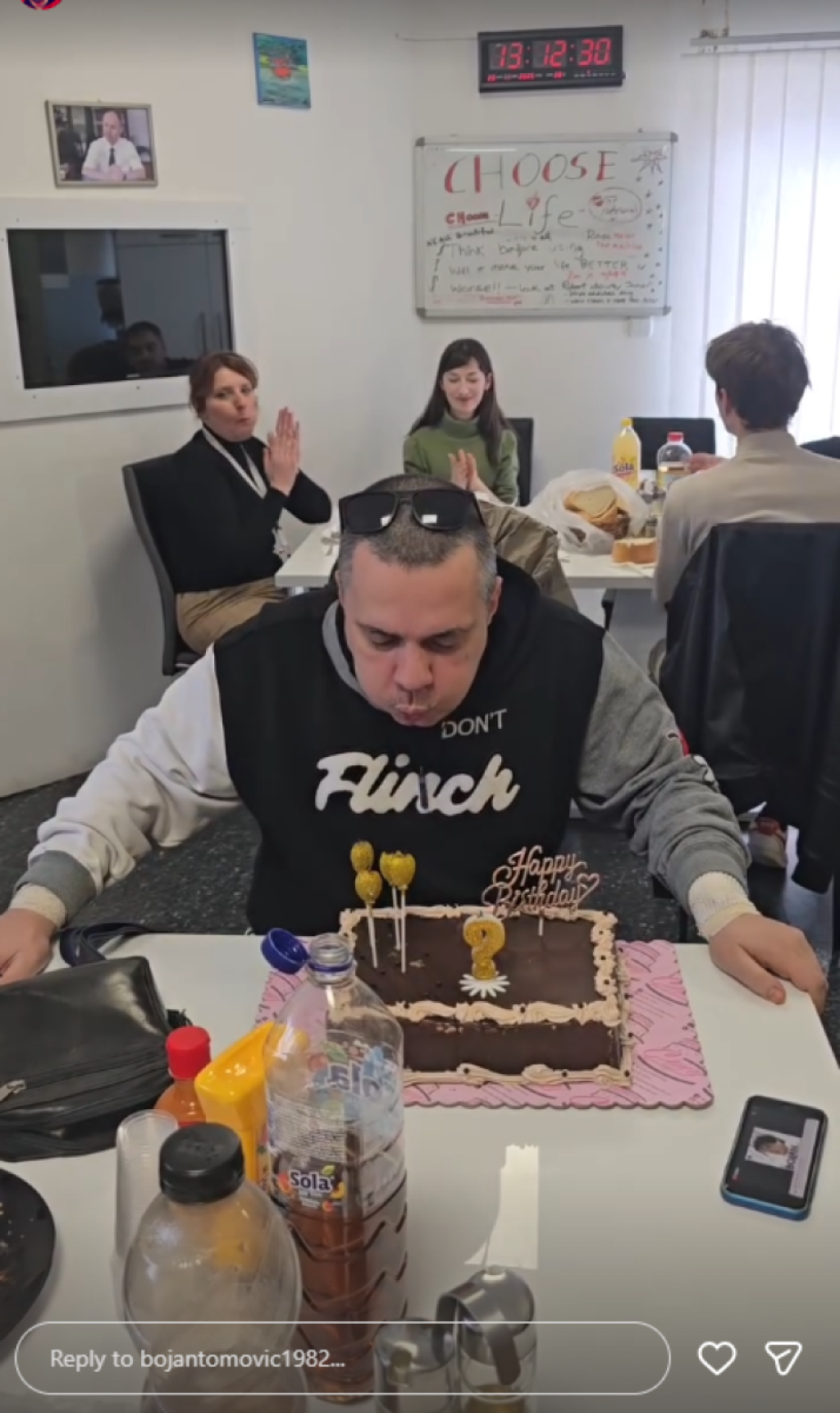 Inače, njemu su lekari, ali i njegovi drugari iz bolničke sobe, pripremili malo iznenađenja, te mu doneli čokoladnu tortu, a umesto svećica sa brojem godina koje puni, stajali su upitnici. Dok je Tomović duvao svećice, u pozadini se čula njegova pesma "Motorola".