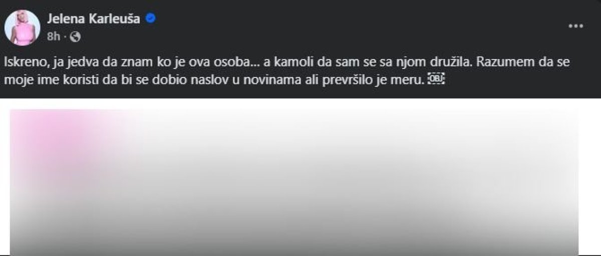 "Iskreno, ja jedva da znam ko je ova osoba… a kamoli da sam se sa njom družila. Razumem da se moje ime koristi da bi se dobio naslov u novinama, ali prevršilo je meru", poručila je JK na Fejsbuku tokom noći.