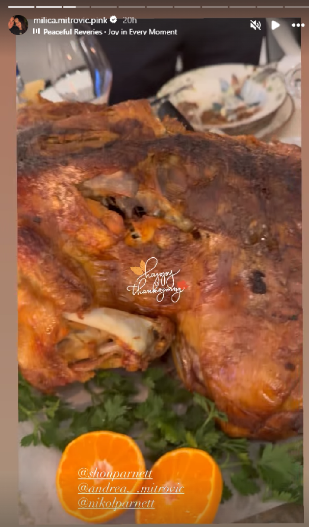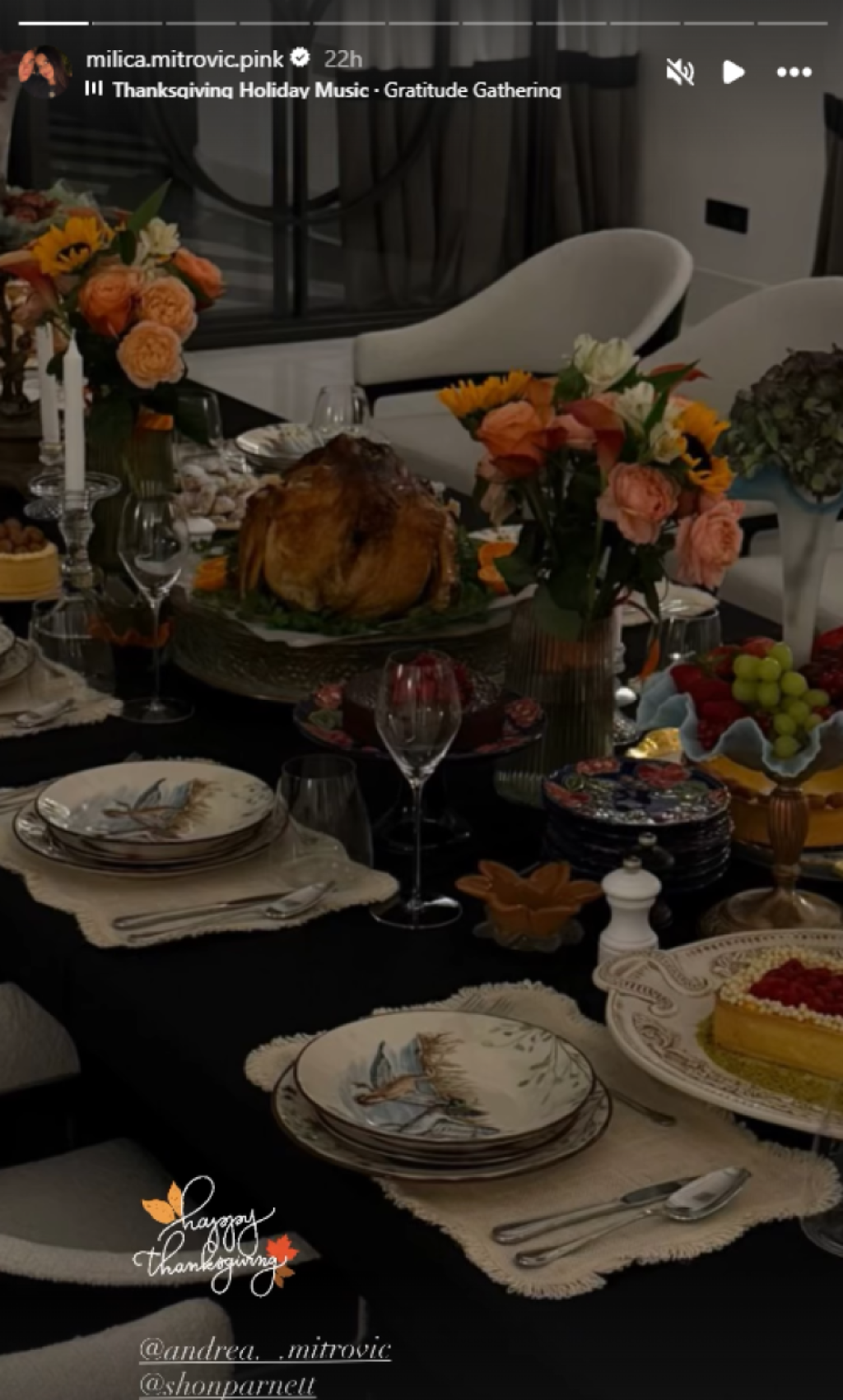 Na snimku koji je Milica objavila vidi se raskošna trpeza pripremljena za ovu priliku. Sto je bio prepun raznih specijaliteta: nekoliko vrsta torti, bogata čorba, raznovrsne salate, kao i nezaobilazna punjena ćurka, što je tradicionalno jelo koje je simbol Dana zahvalnosti.