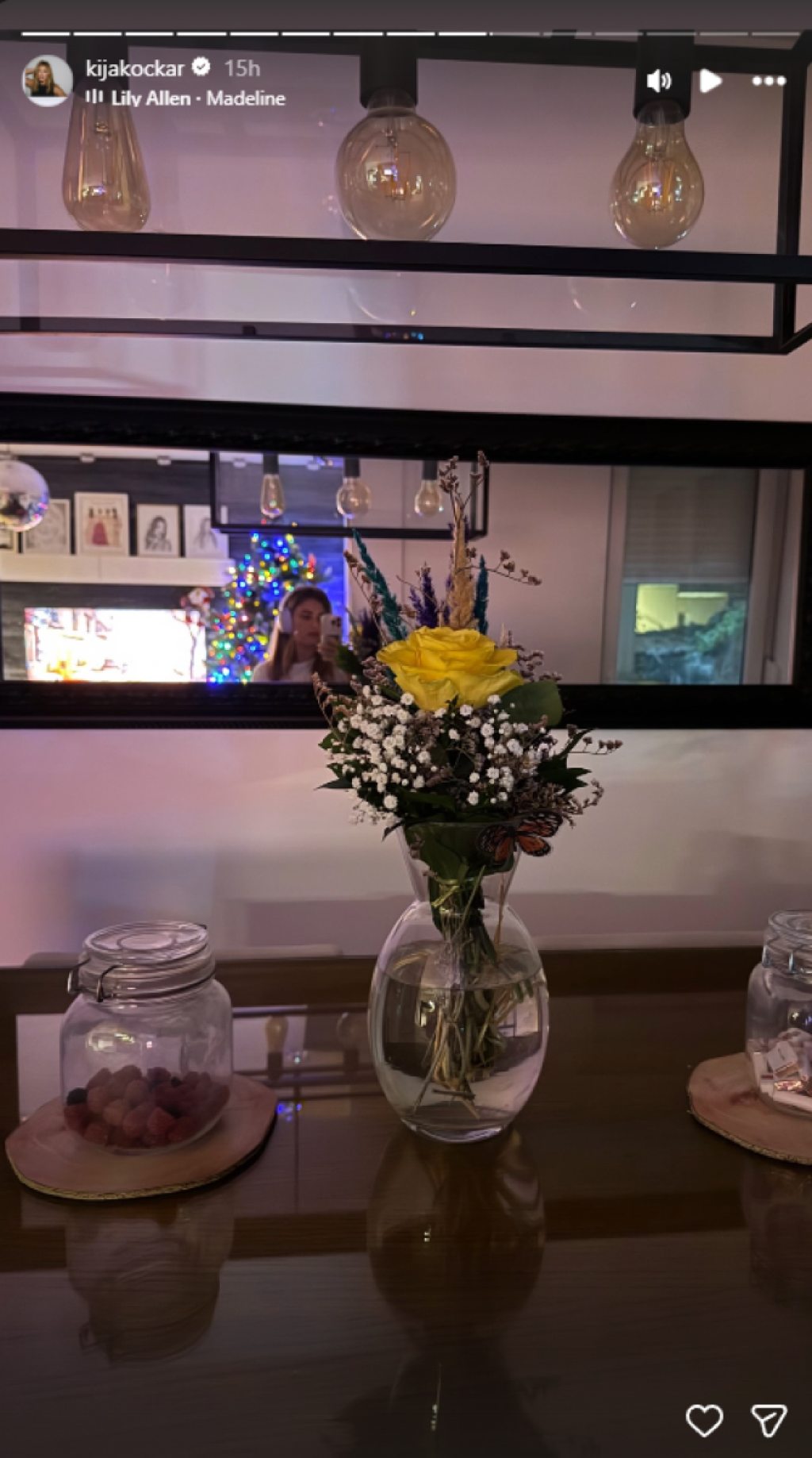 Bivša voditeljka je zatim objavila fotografiju u ogledalu i pokazala kako izgleda njena trpezarija, a na stolu su bile poslastice i buket sa žutom ružom.