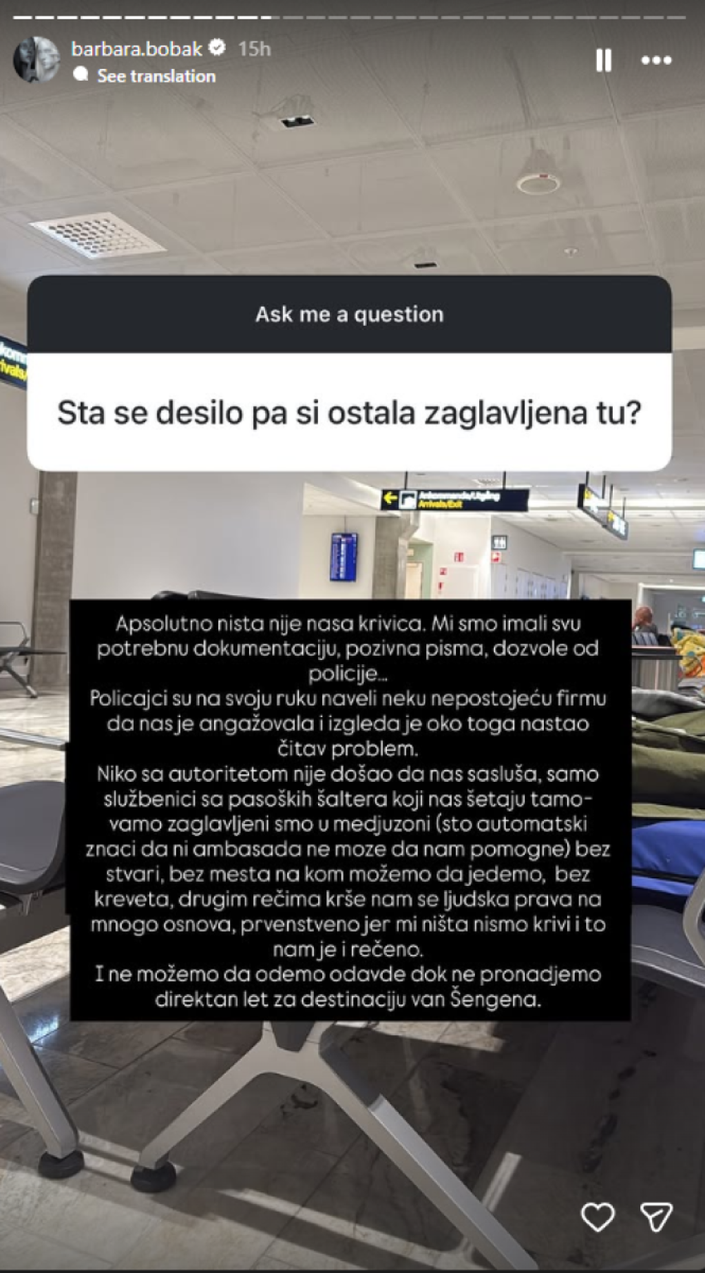 Kako je Bobakova navela u oglašavanju s aerodroma, problem nije u njima i njihovim papirima, a precizno objašnjenje u čemu jeste problem - nisu dobili.
