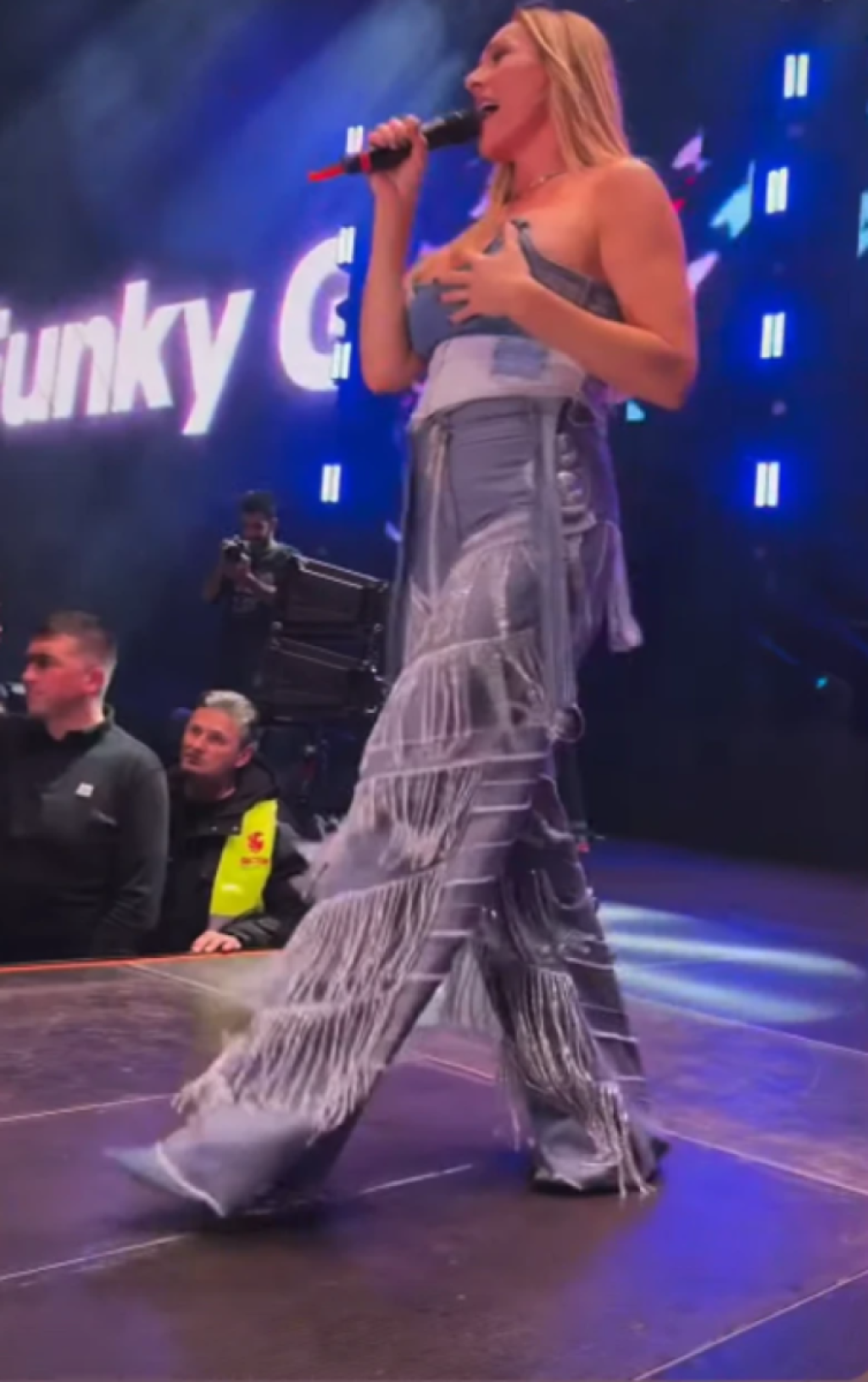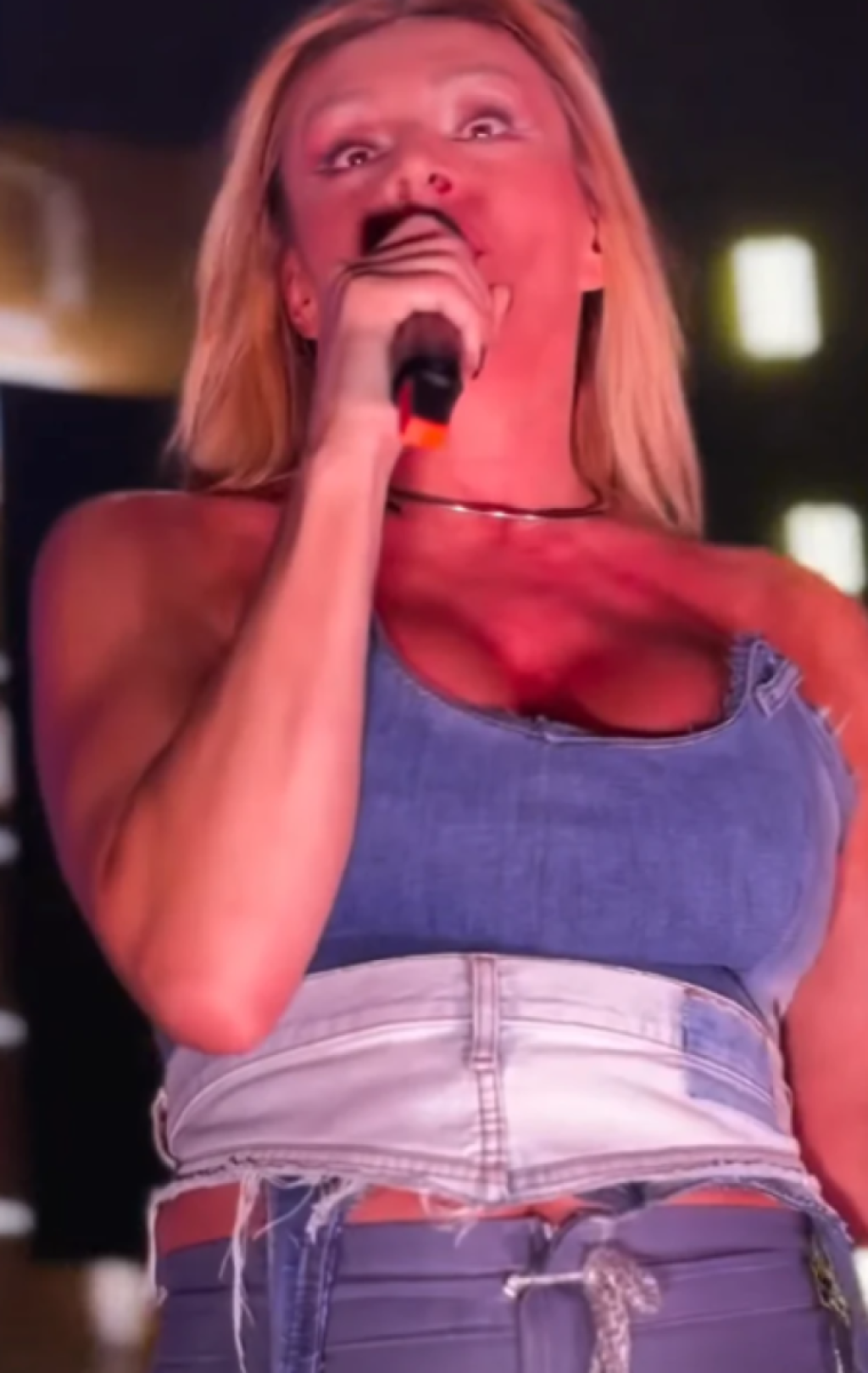 Raskošno poprsje pevačici je zadalo muke na sceni, pa je jednom rukom pridržavala top kako ne bi spao pod težinom silikonskih grudi.