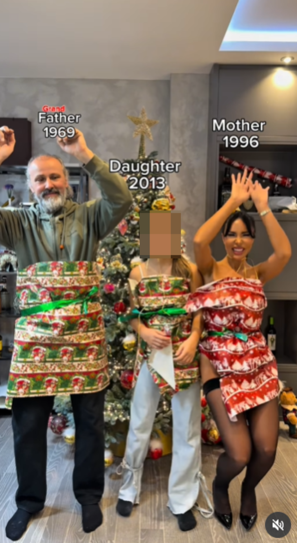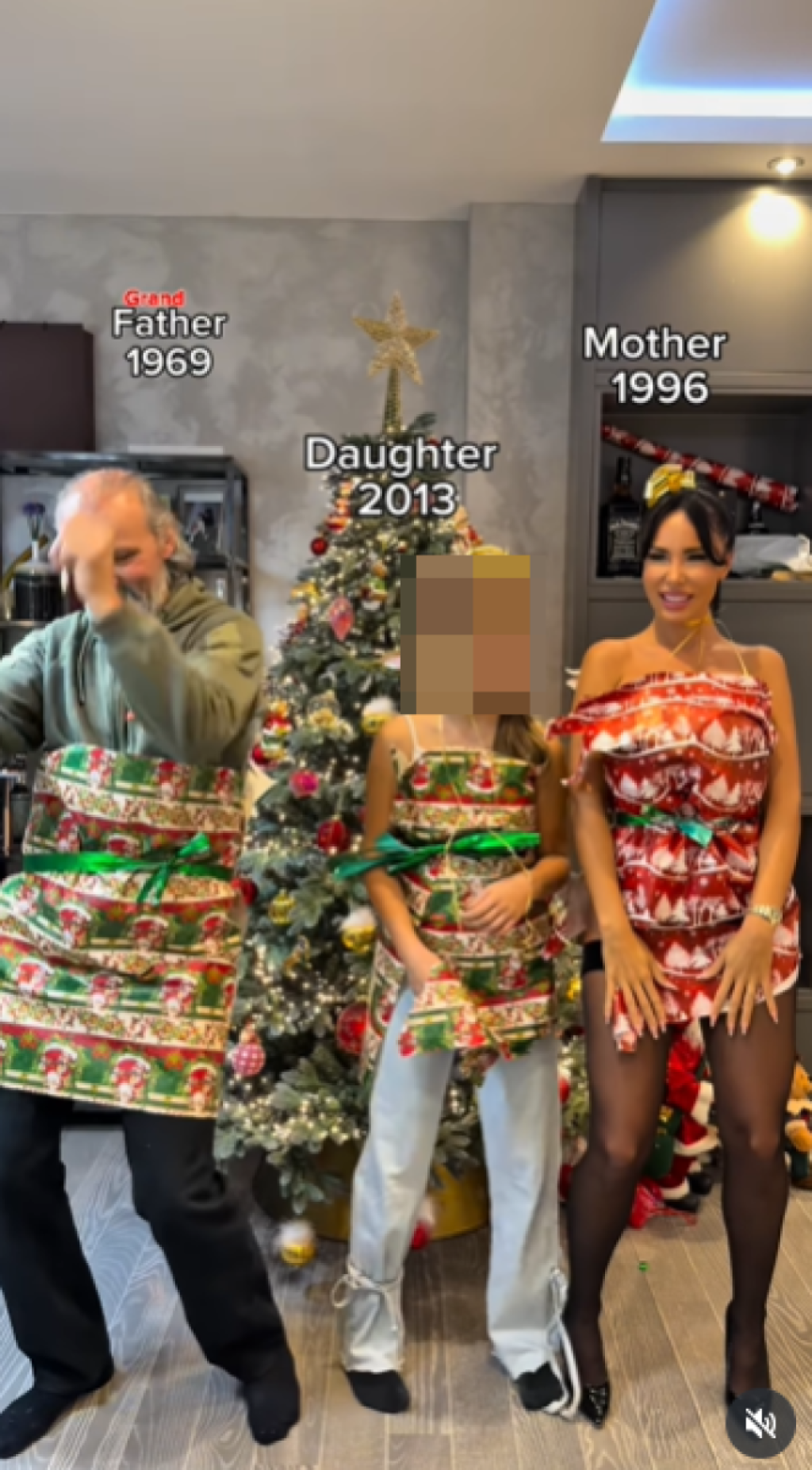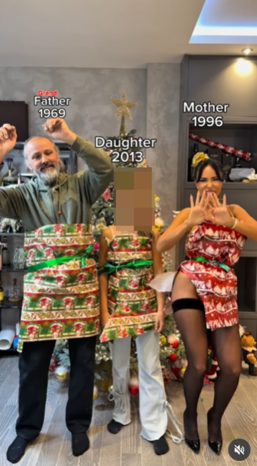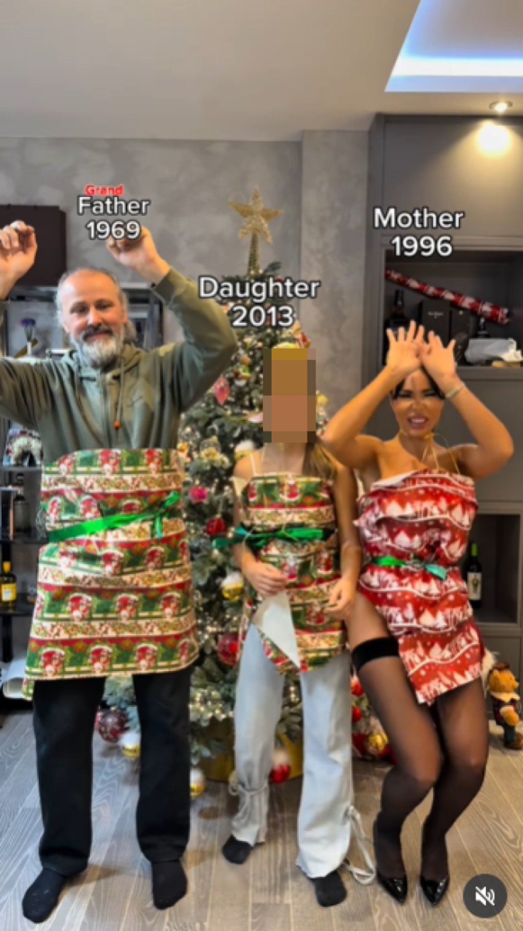 Kontroverzna starleta podelila je snimak na kojem, ispred novogodišnje jelke, igra sa ocem Karađorđem i ćerkom Magdalenom, dok je ona potpuno gola, prekrivena samo ukrasnim papirom ispod kojeg se nazirao deo zadnjice.