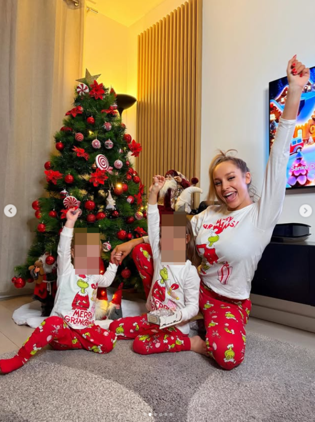 Najviše pažnje privukle su upravo njene mezimice, koje su pozirale u usklađenim novogodišnjim pidžama zajedno sa mamom.