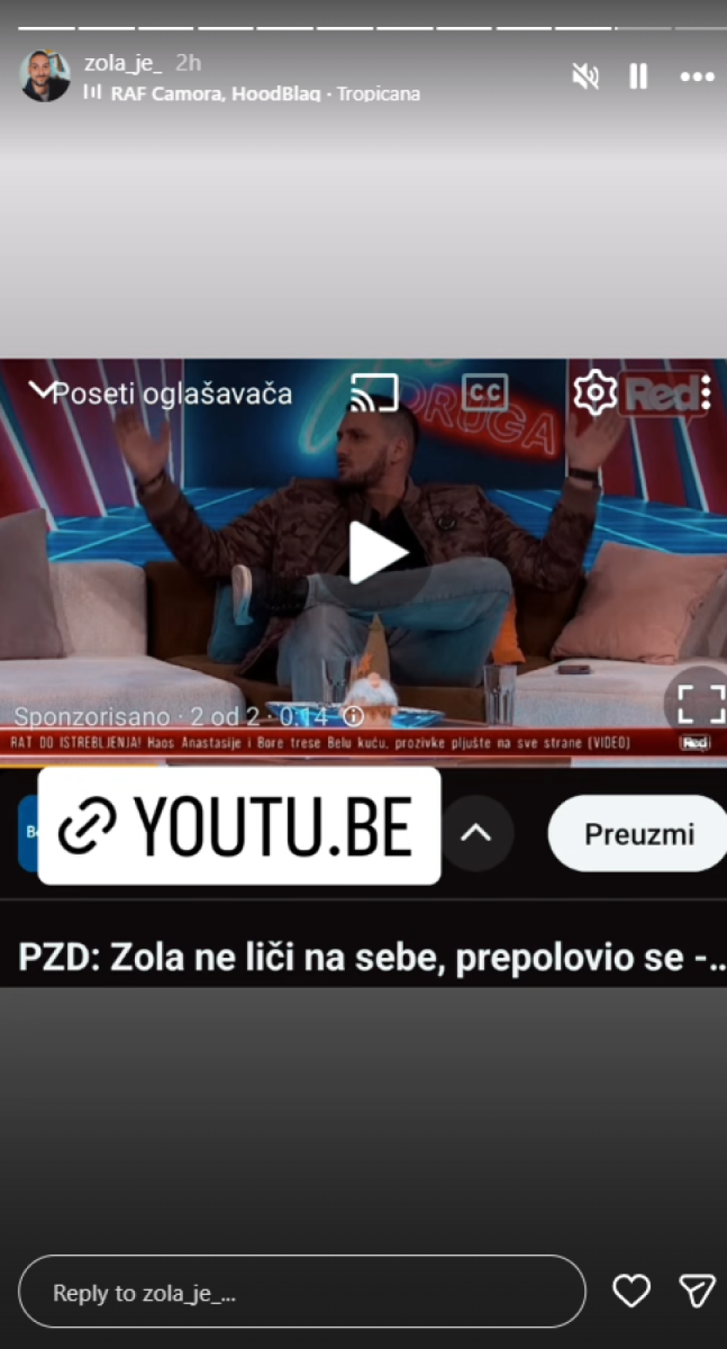 Vidno mršaviji, Zola je snimio selfi u jakni, a potom podelio i link emisije u kojoj je učestvovao.
