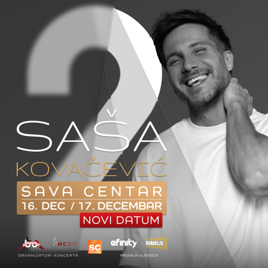 Dok novi singl osvaja top liste, Saša Kovačević se uveliko sprema za dva velika beogradska koncerta u Plavoj dvorani Sava Centra. Prvi datum, 16. decembar, je rasprodat! Zbog ogromnog interesovanja publike, otvoren je i drugi termin: 17. decembar. Ova dva decembarska koncerta pružiće publici priliku da uživa u spektakularnoj produkciji, sjajnoj atmosferi i hitovima koji su obeležili Sašinu karijeru, uključujući i novi singl "Boje leptira".