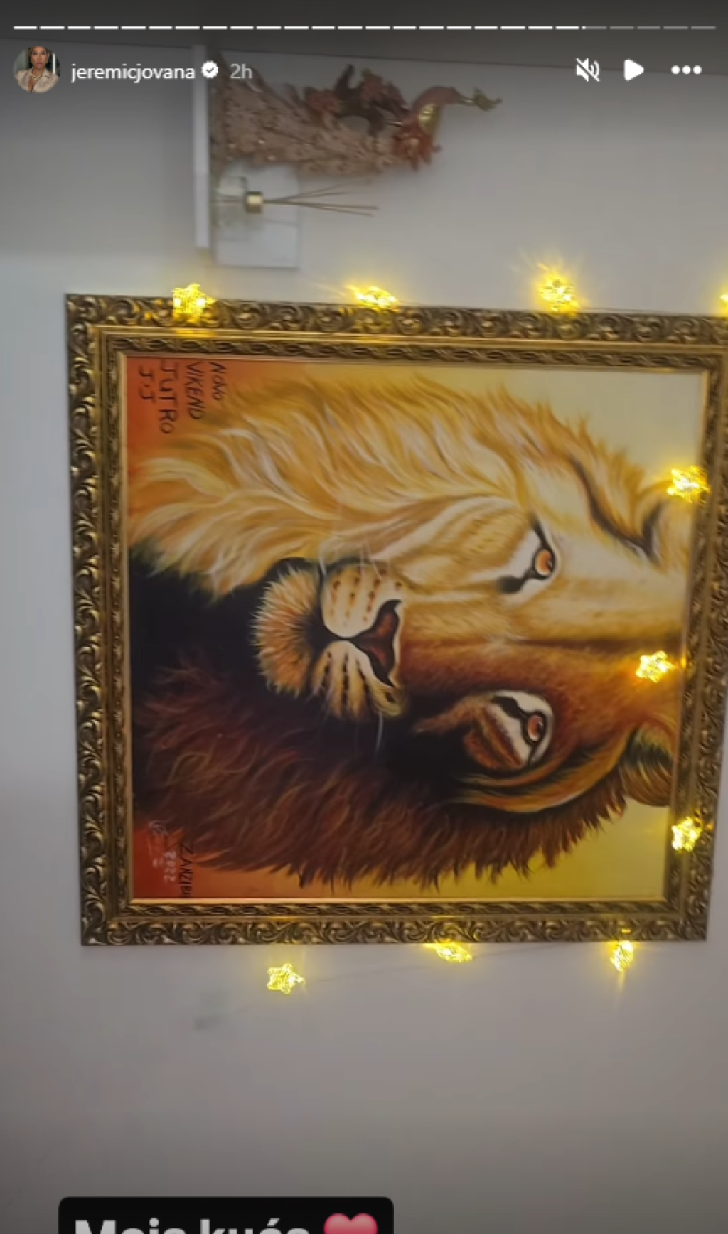 Ipak, najviše pažnje privukao je ostatak dekoracija u stanu. Na prozoru dominira ogromna crvena mašna, dok je oko slike lava, koju Jovana drži iznad kreveta, pažljivo poređala bele ukrase i lampione, stvarajući upečatljivu prazničnu atmosferu.