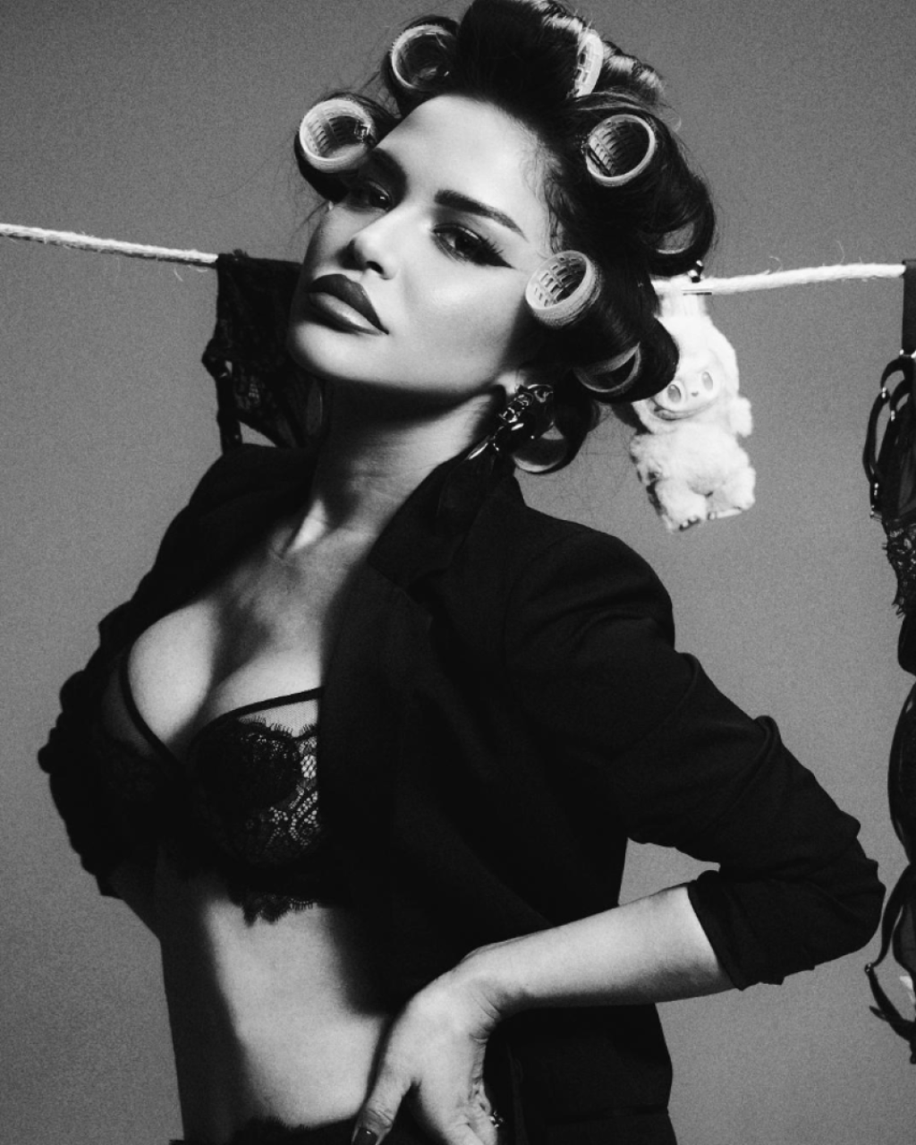 Od izazovnih kadrova u kojima je cela oblepljena trakom, pa do onih u kojima nosi francusku čipku, sa papilotnama u kosi.