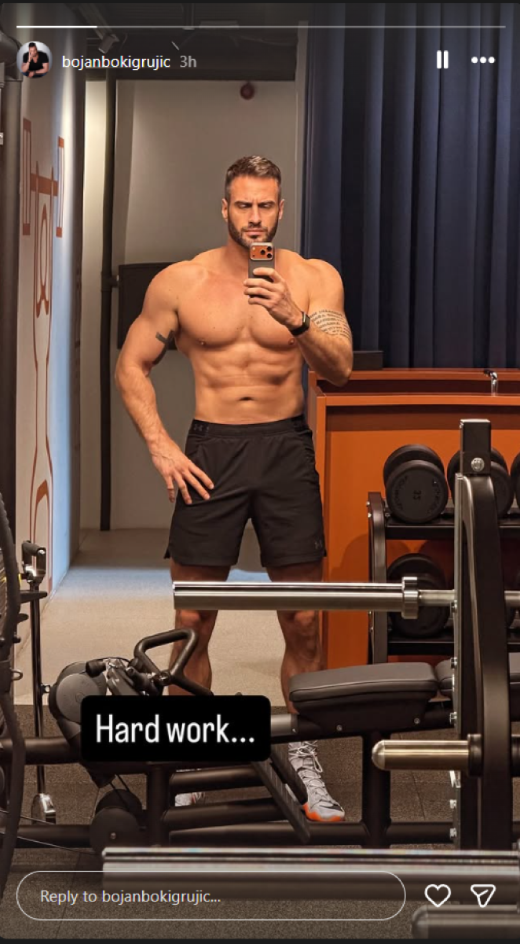 Na Instagramu je objavio kadar iz teretane na kojem pozira bez majice, otkrivajući isklesane trbušnjake, široka ramena i raskošne mišiće.