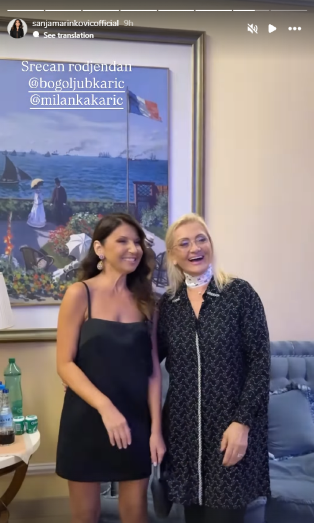 Pored snimka sa Bogoljubom, voditeljka je podelila i fotografiju sa njegovom suprugom Milankom. Na slici se vidi da su sve vreme bile odlično raspoložene, zagrljene, nasmejane i sređene za proslavu koja je sudeći po svemu, protekla u prijatnoj i veseloj atmosferi.
