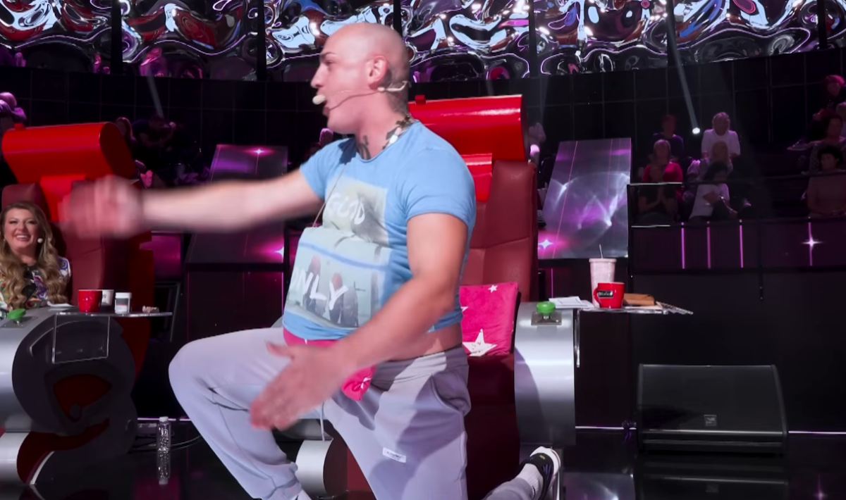 U tom trenutku atmosfera se dodatno usijala, a reper je iznenadio sve svojim potezom, kada je stavio jastuk ispod majice, seo na Zoričino mesto i pokušao da je iskarikira, što je pevačicu dodatno razbesnelo.
