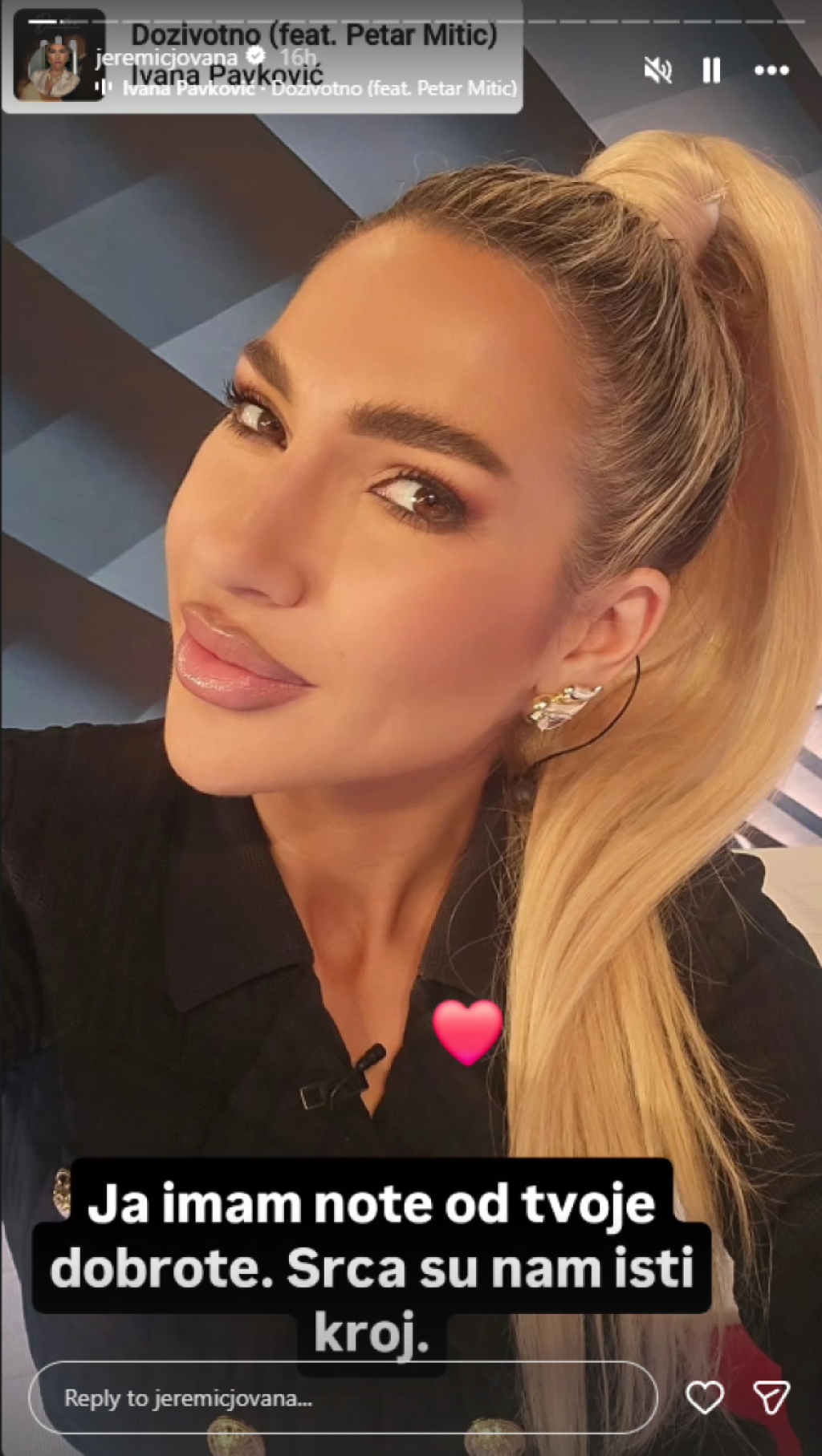 "Ja ima note od tvoje dobrote. Srca su nam isti kroj", napisala je Jovana Jeremić a mnogi misle da je ove reči uputila svom novom partneru.
