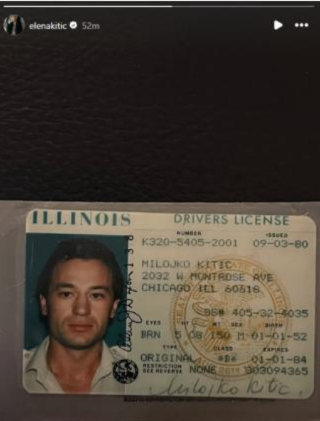 Elena, koja je sa ocem delila binu na njegovom koncertu u Zagrebu, nedavno je objavila sliku njegove vozačke dozvole iz 1980. godine, izdatu u Americi. Ono što je privuklo pažnju javnosti jeste ime na dokumentu: "Milojko Kitić".
