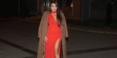 Tamara, koja se nedavno pomirila sa koleginicom Teodorom Džehverović, odabrala je crvenu haljinu koja ima duboki izraz u gornjem delu, pa je njen dekolte bio u prvom planu, ali i duboki šlic, koji ide skroz do butine.