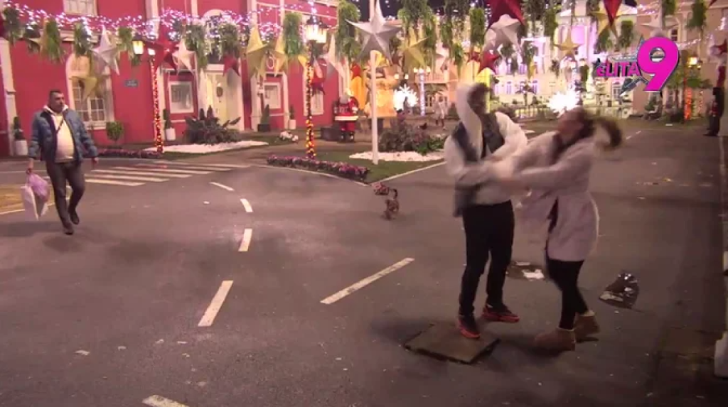 Aneli je nasrnula na Luku i više puta ga udarila, nakon čega ju je on oborio na zemlju. Tada su pojedini cimeri pritrčali kako bi ih razdvojili.