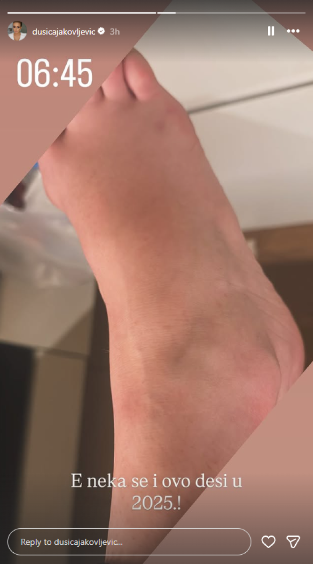 Dušica, koja je nedavno, po sopstvenom priznanju, bila na meti crne magije, na Instagramu je objavila fotografiju svoje noge, na kojoj se vidi otok, ali nije precizirala kako je do povrede došlo.