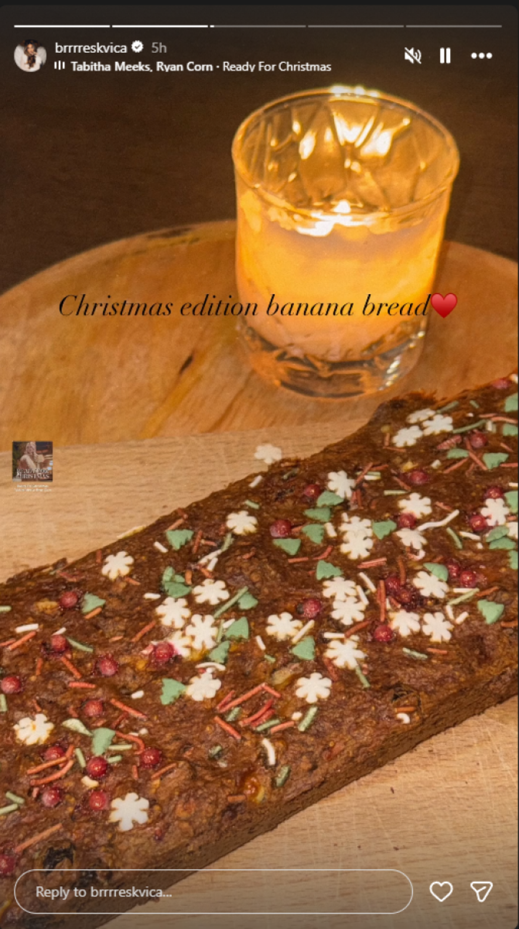 Ovo je ispratila uz stihove pesme "Ready for Christmas" (Spremna za Božić), dok na fotki vidimo i kako je ukrasila hleb.