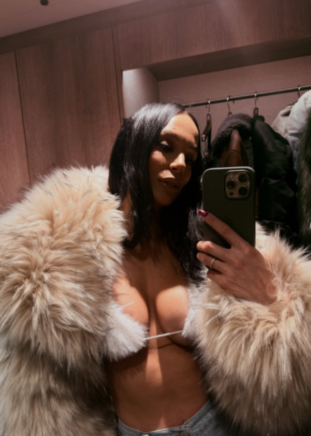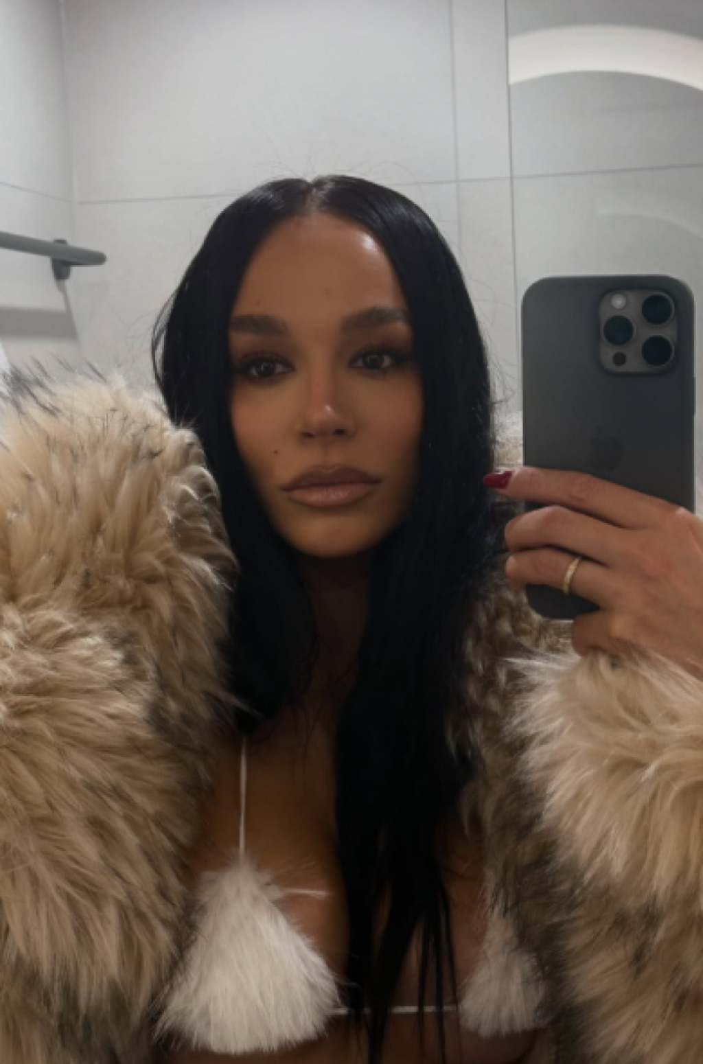 Pevačica je obukla kupaći kostim, ali u skladu sa godšnjim dobom - krzneni. Preko golog tela obukla je bundu, a farmerke je otkopačala i time dodatno podigla temperaturu.