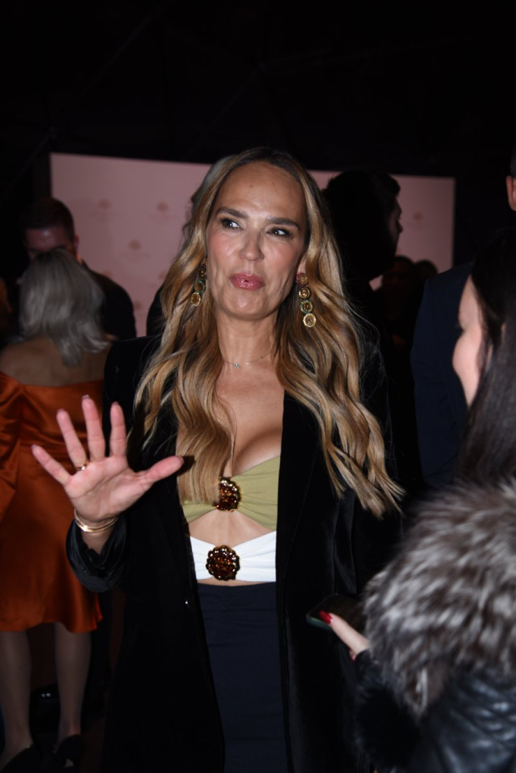 Marijana je nosila elegantnu haljinu do kolena, sa detaljima od traka u predelu dekoltea. U prvom planu bile su njene grudi, ali i osmeh po kojem je poznata.