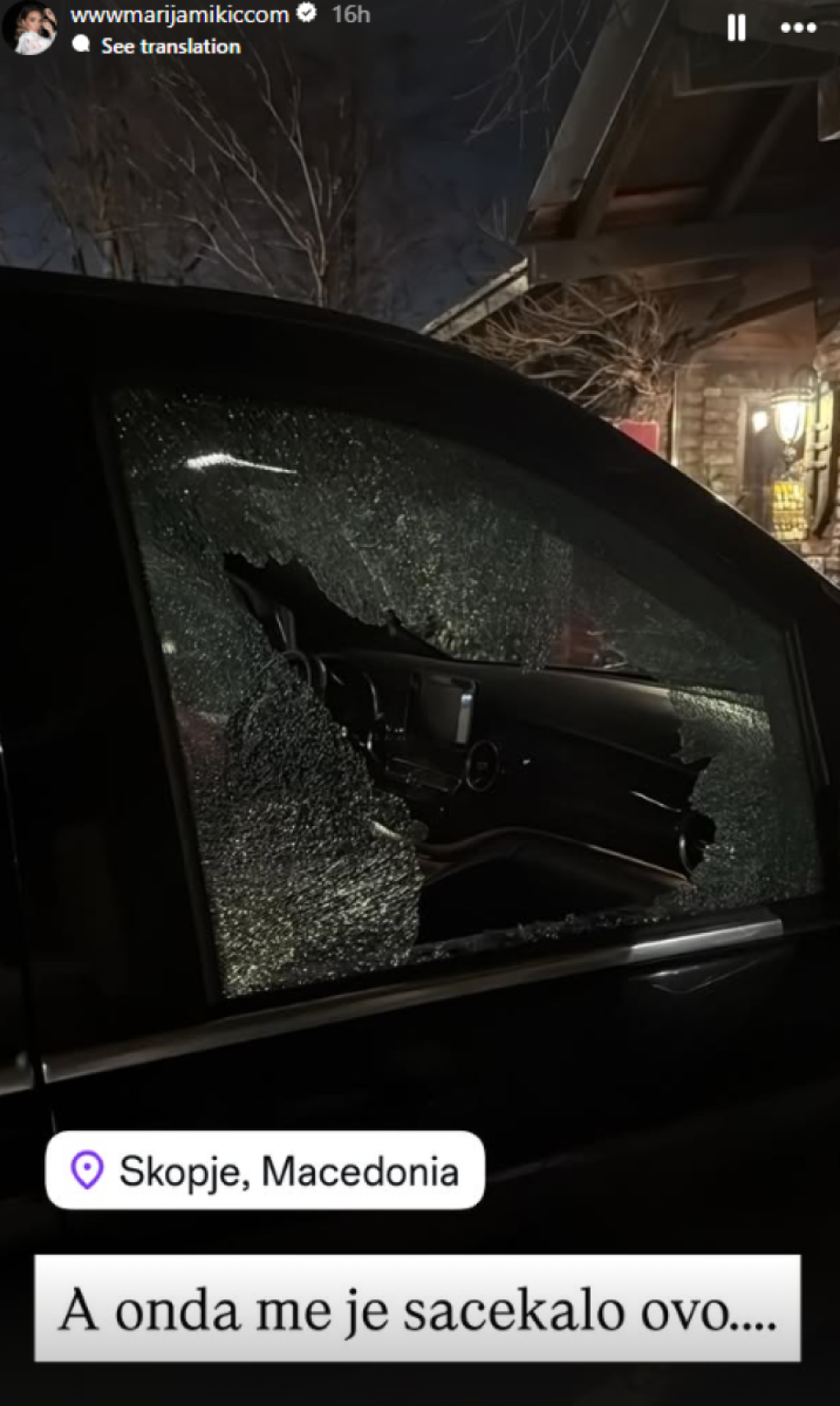 "A onda me je sačekalo ovo...", napisala je pevačica, dok ispred nje vidimo potpuno polupano staklo na mestu suvozača. Ko je ovo učinio i zašto, nije poznato.