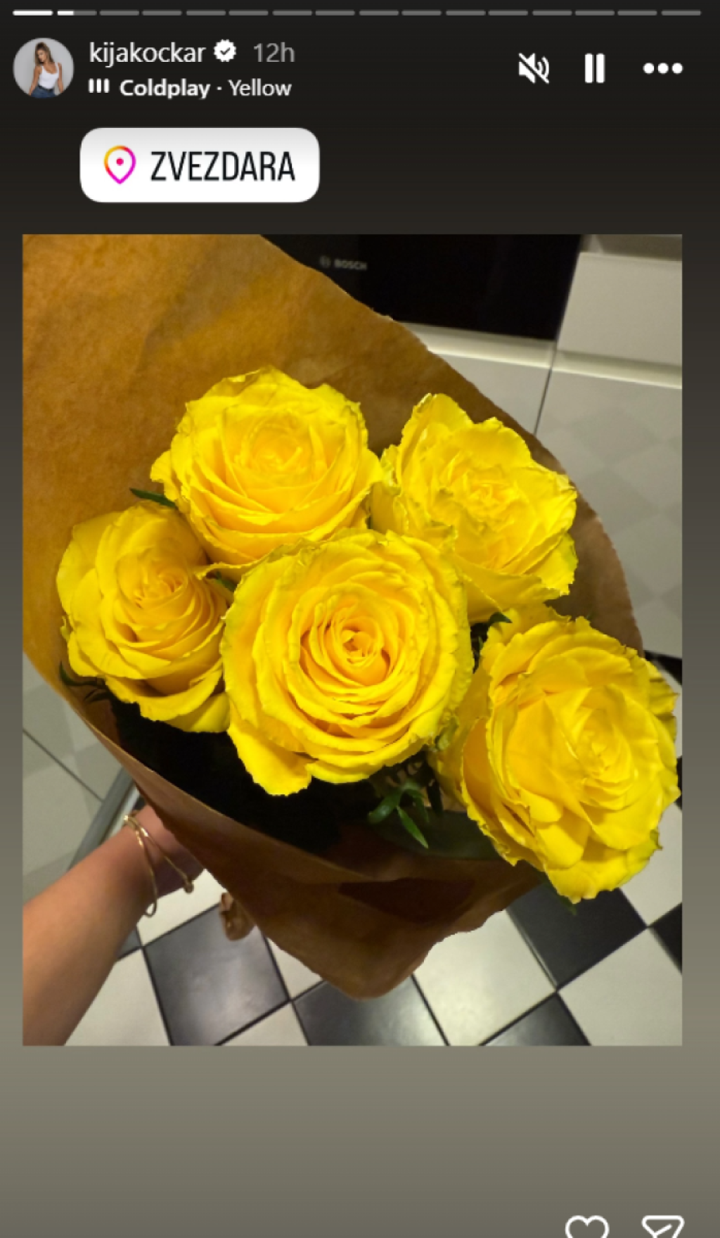 Ovoga puta, raznežilo ju je žuto cveće koje je dobila, pa je taj trenutak podelila sa pratiocima. Uz fotografiju je označila i lokaciju - opštinu Zvezdara, gde živi.