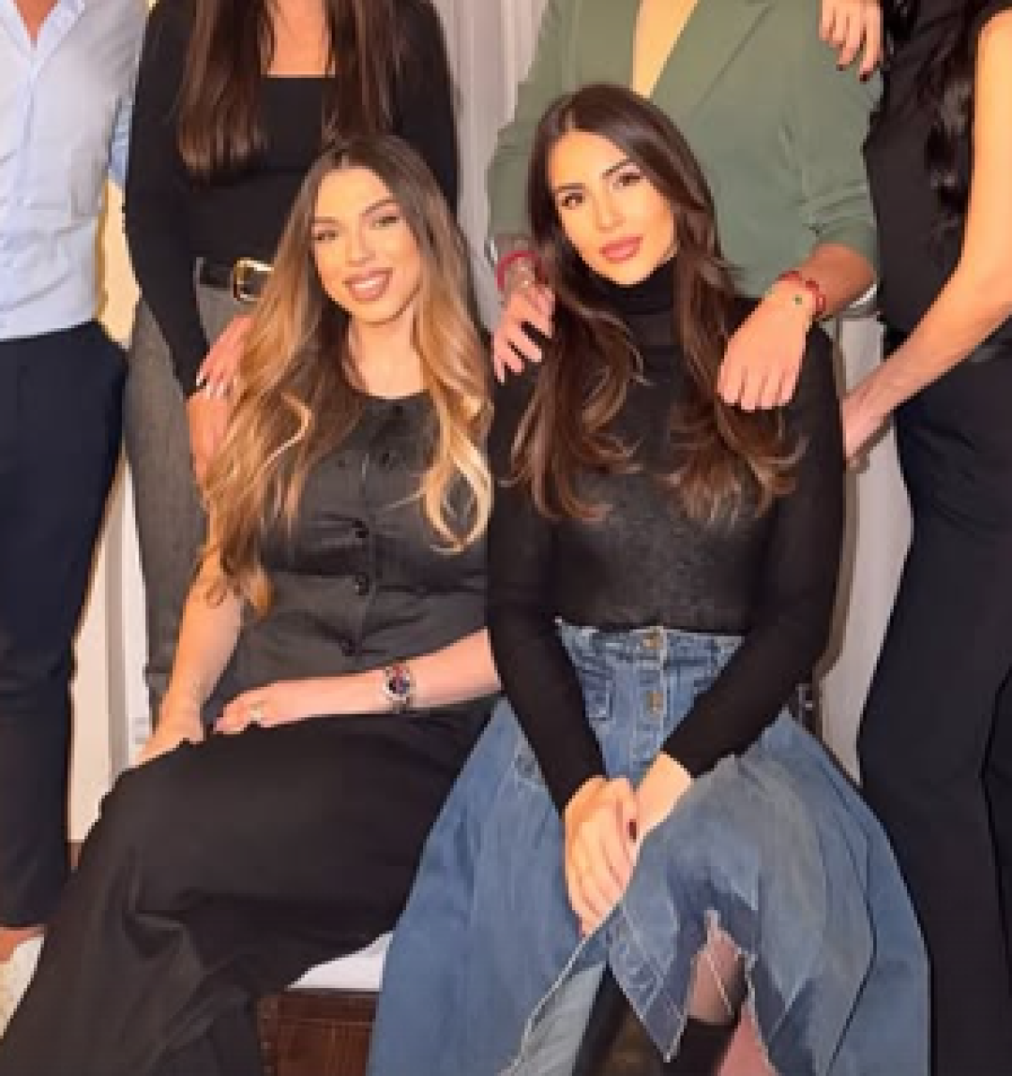 Ona je za ovu priliku obukla crnu, providnu rolku i teksas suknju i pozirala zajedno sa svojim frizerom i prijateljem Stevanom Radivojevićem i kumom Tarom Milutinović.