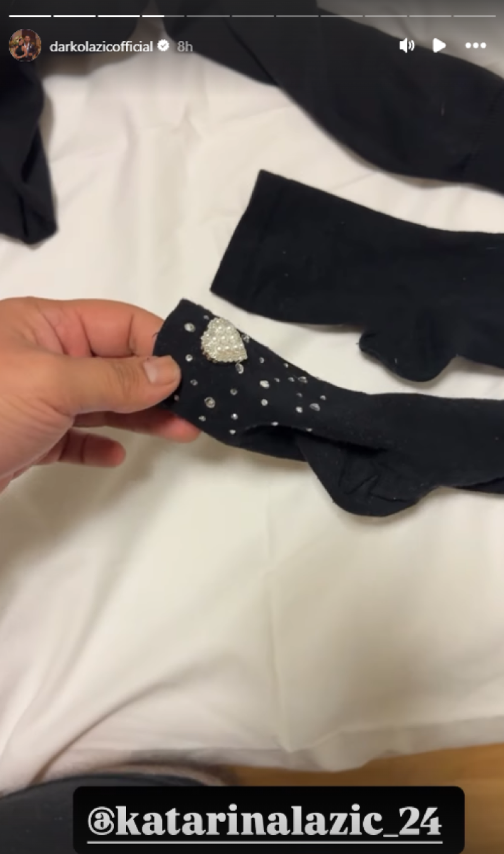 - Došao u Švedsku da pevam moja žena me je spakovala crne farmerke, crni džemper, cipele... Ja joj rekao da mi spakuje i crne čarape i ona ih je spakovala - započeo je priču Darko koji je pokazao da mu je Kaća greškom spakovala čarape sa cirkonima.