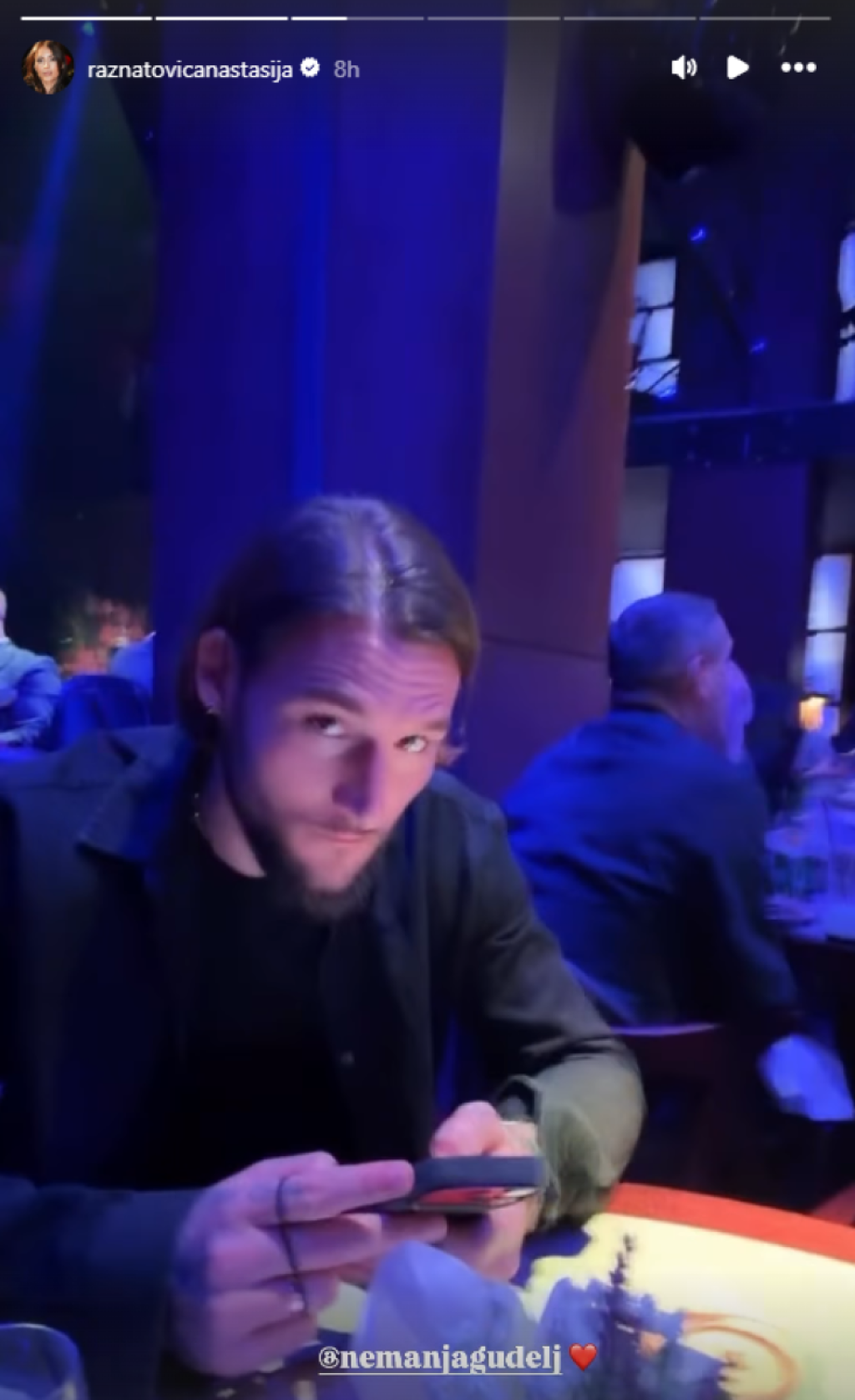 Nemanja i Anastasija otišli su na romantičnu večeru, koja se kasnije pretvorila u pravu zabavu. Pevačica je snimila akrobacije barmena za šankom, a zatim je njenu fotografiju iz provoda objavio i suprug.