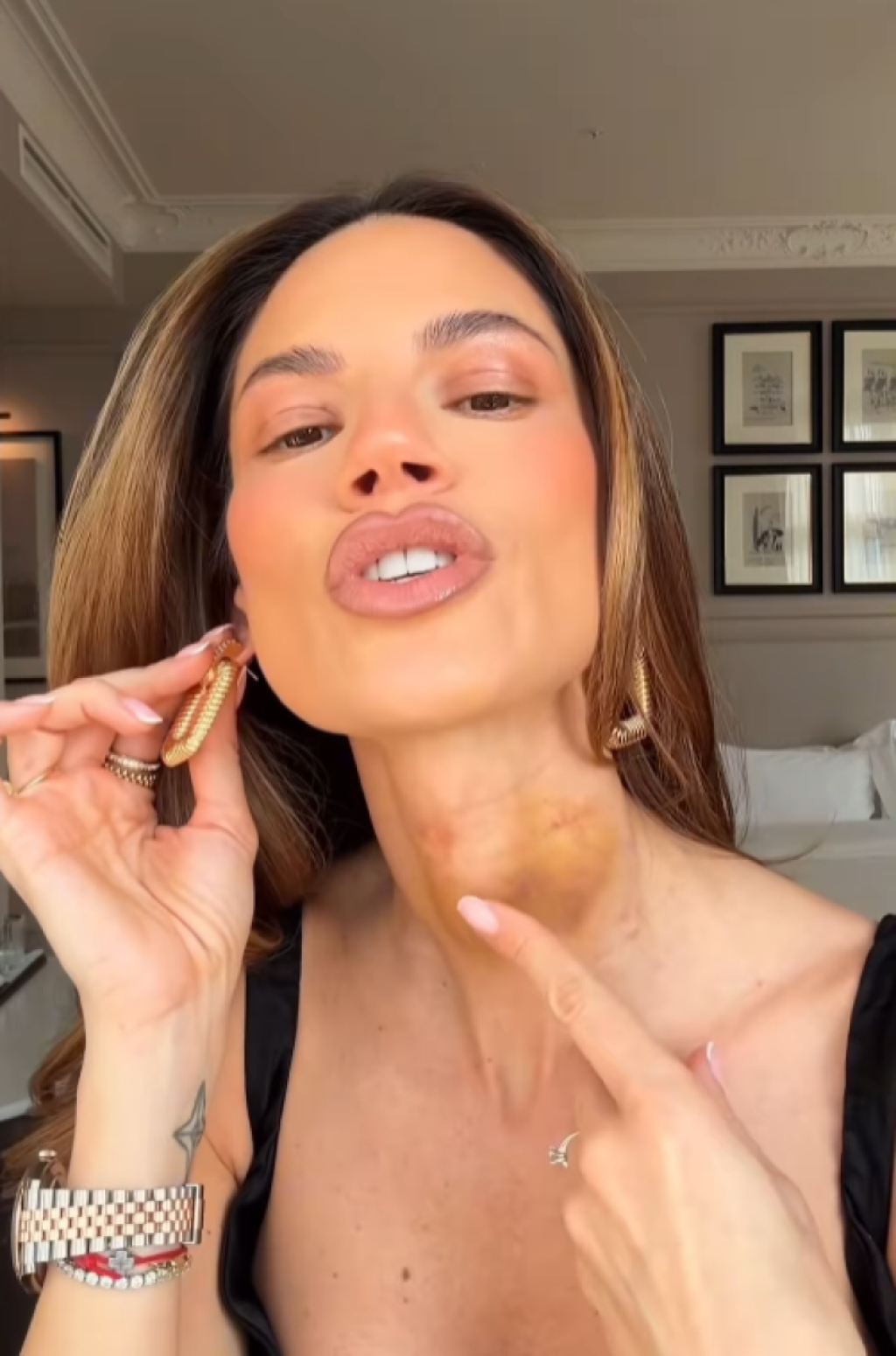Na kraju se našalila kako su podlivi i modrice koje ima od tretmana na njenom vratu još jedan zlatni modni detalj.
