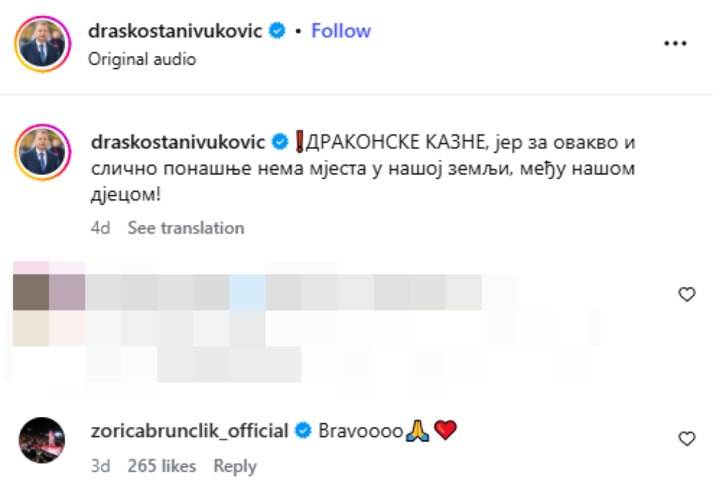 Stanivuković je pre nekoliko dana na Instagramu i TikToku objavio video u kojem je poručio da neće dozvoliti ponašanje koje, kako je naveo, podrazumeva udaranje mladih patikama po glavi, polivanje pićem ili šišanje tokom nastupa.