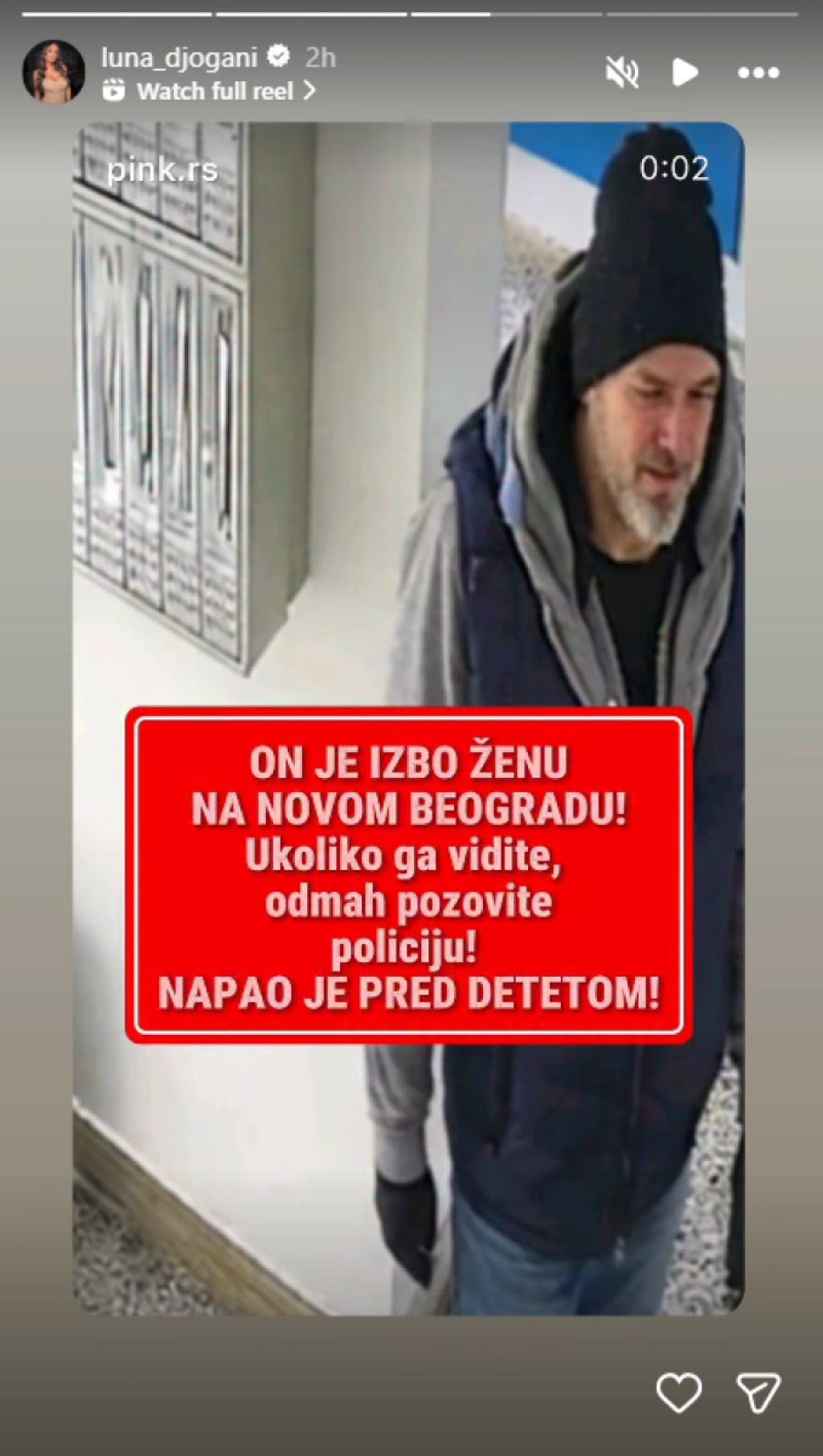 Luna je na svom Instagramu podelila sliku monstruma koji je nožem izbo ženu i podelila apel, da ukoliko ga neko vidi odmah pozove policiju.